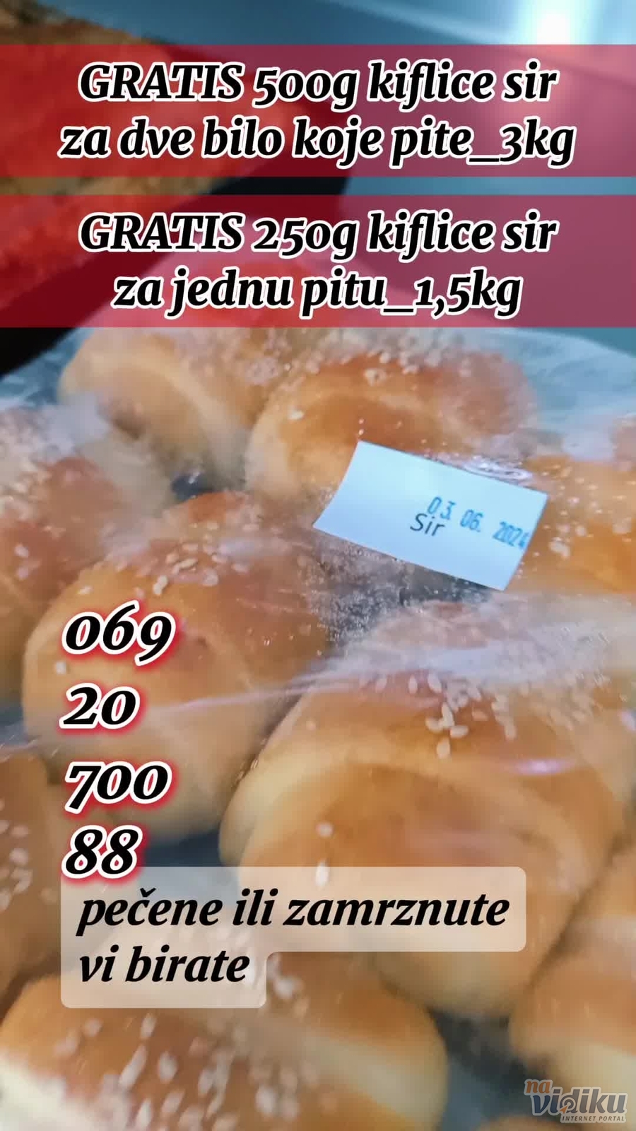 Po vašoj želji i potrebi pečemo pite i mantije. Kiflice su već pečene i zamrznute. Samo nas kontaktirajte i zakažite vreme koje vama odgovara.