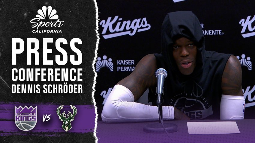Kings guard Dennis Schröder speaks to reporters after Sacramento’s 135-133 win o...