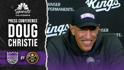 Kings coach Doug Christie speaks to reporters after Sacramento’s 135-133 win ove... -