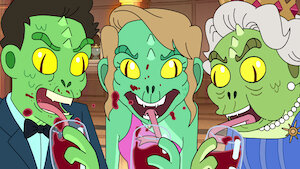 After a lizard people-related PR disaster, the team must do damage control at the swanky Reptoid Gala, where — to Reagan's dismay — hugs are required.