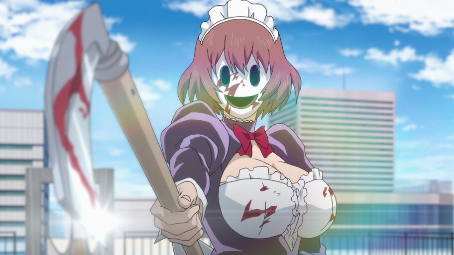 Sniper Mask looks to help a scared Kuon. Yuri and Mayuko head toward Rika, but the saw-wielding Chef Mask has other plans for them.
