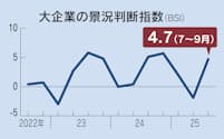 プラスの業種は製造で「食品」「衣服・その他」など、非製造で「サービス」「卸売・小売業」などだった。サービスは大阪・関西万博に流れていた観光の客足が万博終了とともに県内での宿泊に戻ってきたことが寄与したとみられる。