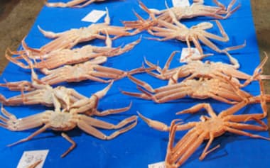 鳥取で「松葉がに」と呼ばれる雄の水揚げ量は69%増の134トン、金額は10%減の5億8600万円だった。1キロ…