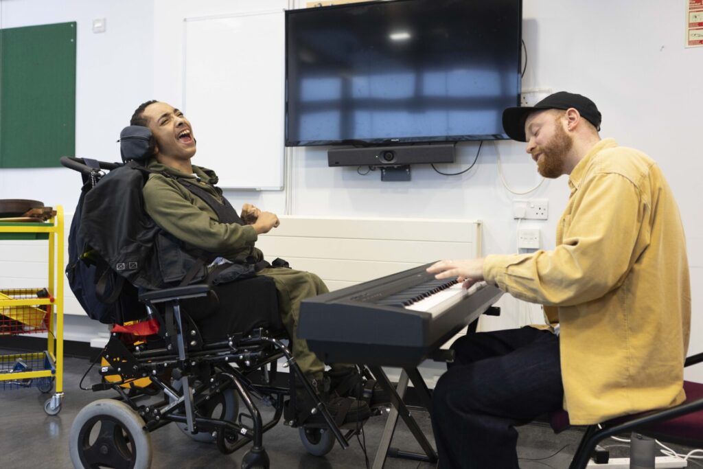 James is 14 years old and has cerebral palsy, visual impairment and learning difficulties. For two and a half years, James has been making music at his school in London, with Nordoff and Robbins music therapist Sam.