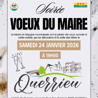 Madame, Monsieur,Chers Querrorivains, Monsieur Jonathan Sanglard, Maire de Querrieu, et l’ensemble du Conseil Municipal ont le plaisir de vous inviter à la cérémonie des vœux qui se tiendra : 📅 Jeudi 24 janvier 2026🕖...