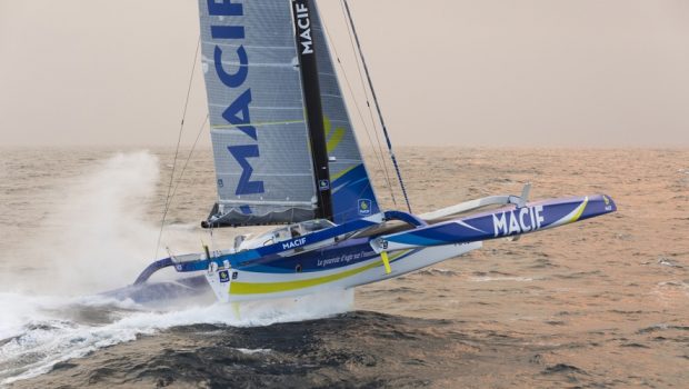 (November 13, 2017; Day 10, 21:00 FR) – François Gabart was on record setting pace today, ahead of Thomas Coville’s time, in spite of equipment issues. Gabart noticed a batten problem aboard the trimaran MACIF. To assess the extent of the breakage, he had to lower the sail to gain access to the batten in question and attempt a repair.