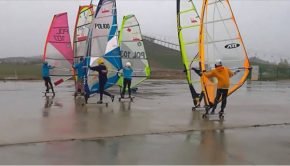 A boardsailing training camp in Poland where they learn sail handling techniques on skateboards