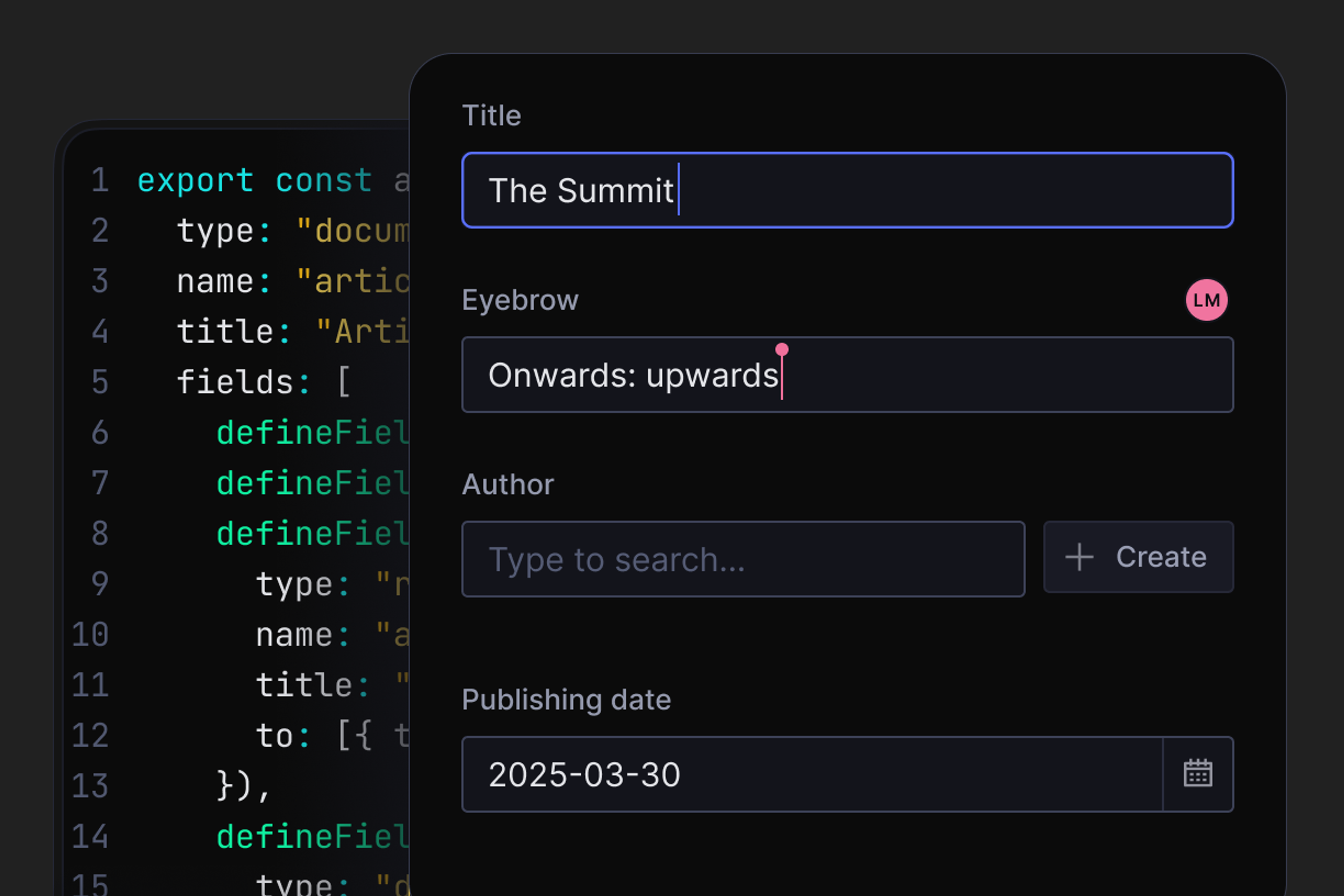 Code-first content modeling gives AI the context it needs. With schemas written in code and content structured by design, tools like Cursor deliver scaffolding and completions that fit your stack—not generic guesses.