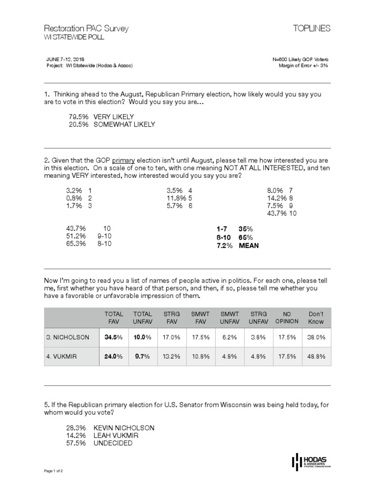Project: WI Statewide (Hodas & Assoc)N=600 Likely GOP Voters