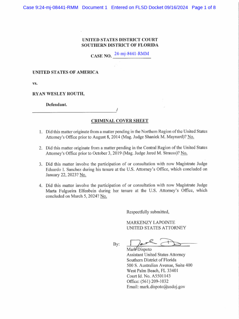 Ryan Routh Criminal Complaint
