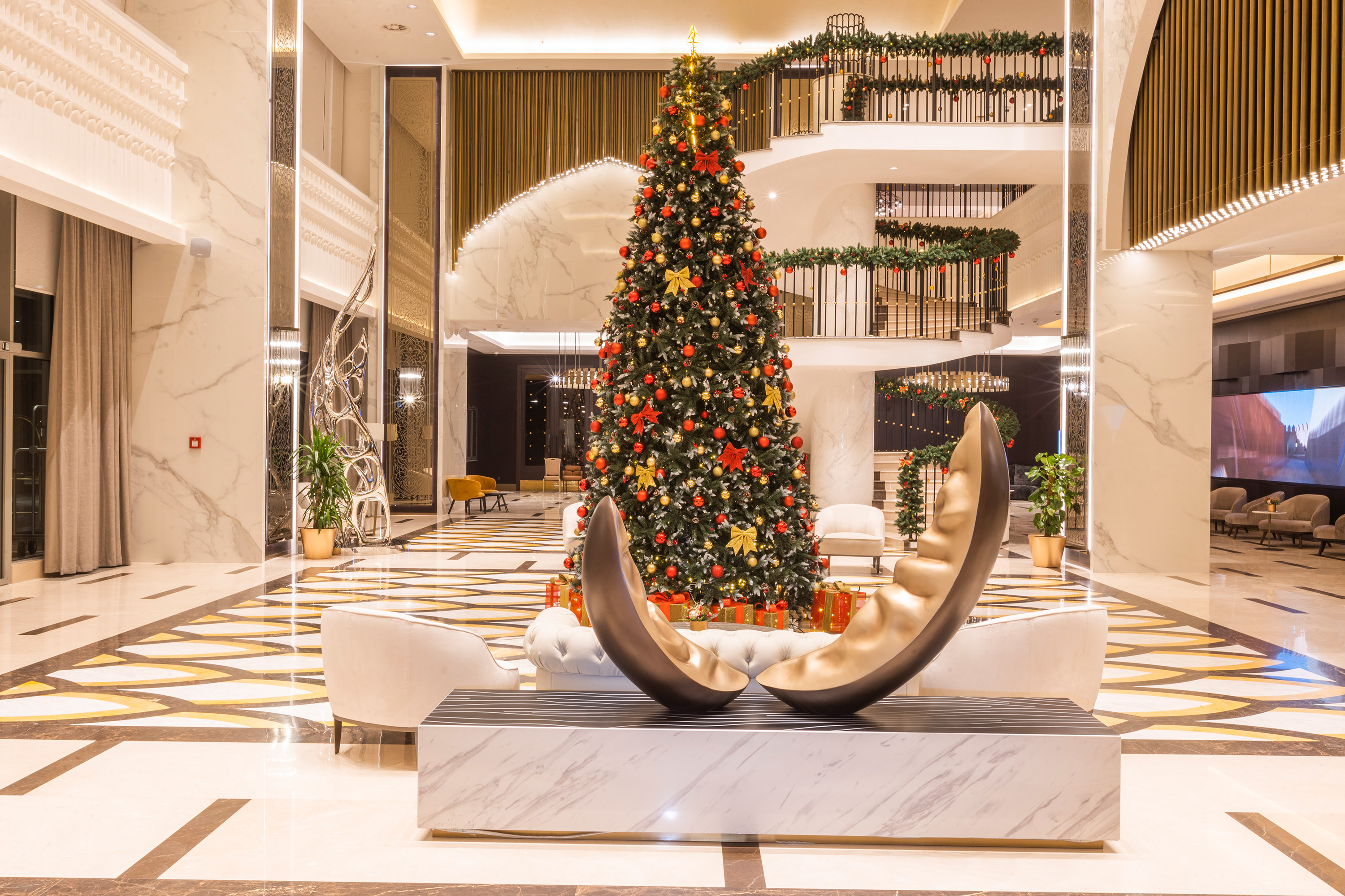 The Silk Road Samarkand touristic complex provides a spacious congress center with a total area of more than 28,000 m2. This is a building decorated in the oriental style with large panoramic windows. Its high-tech venue equipped with modern hardware is designed for hosting congresses, conferences, symposiums, exhibitions, presentations, shows, and banquets.
