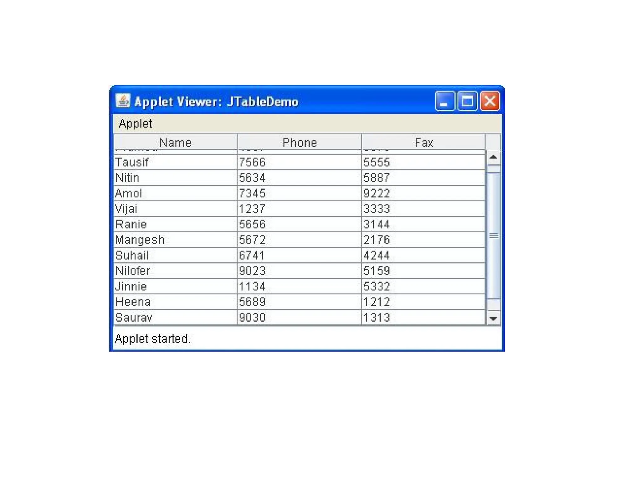 • JTable(Object data[ ][ ], Object colHeads[ ])