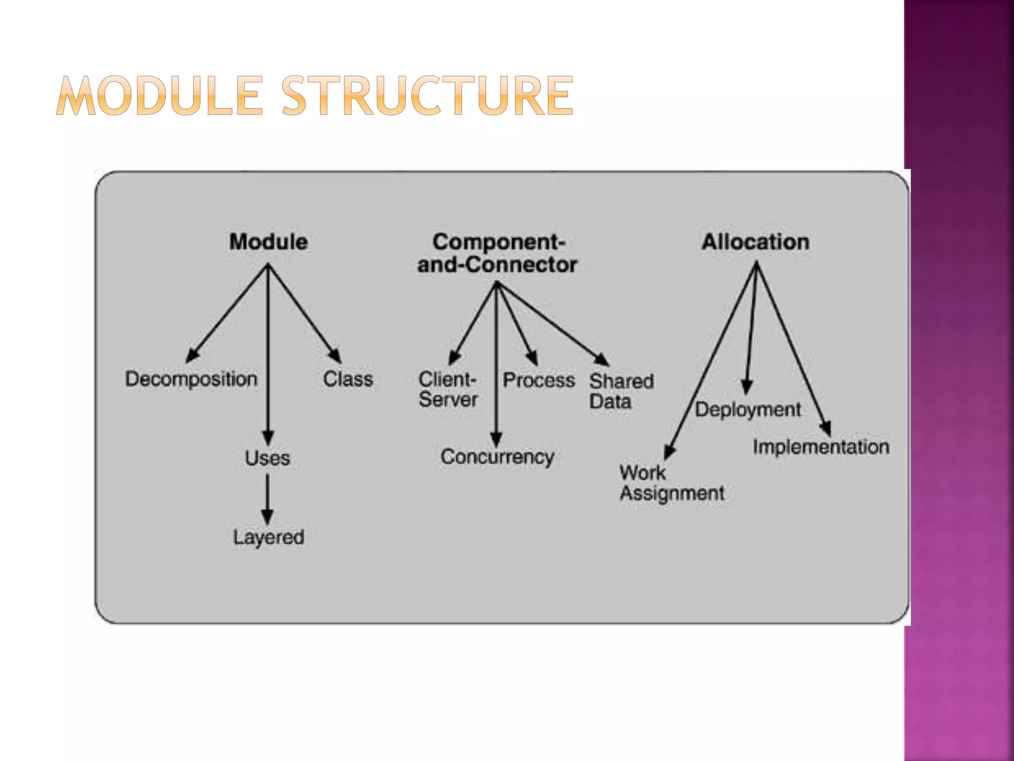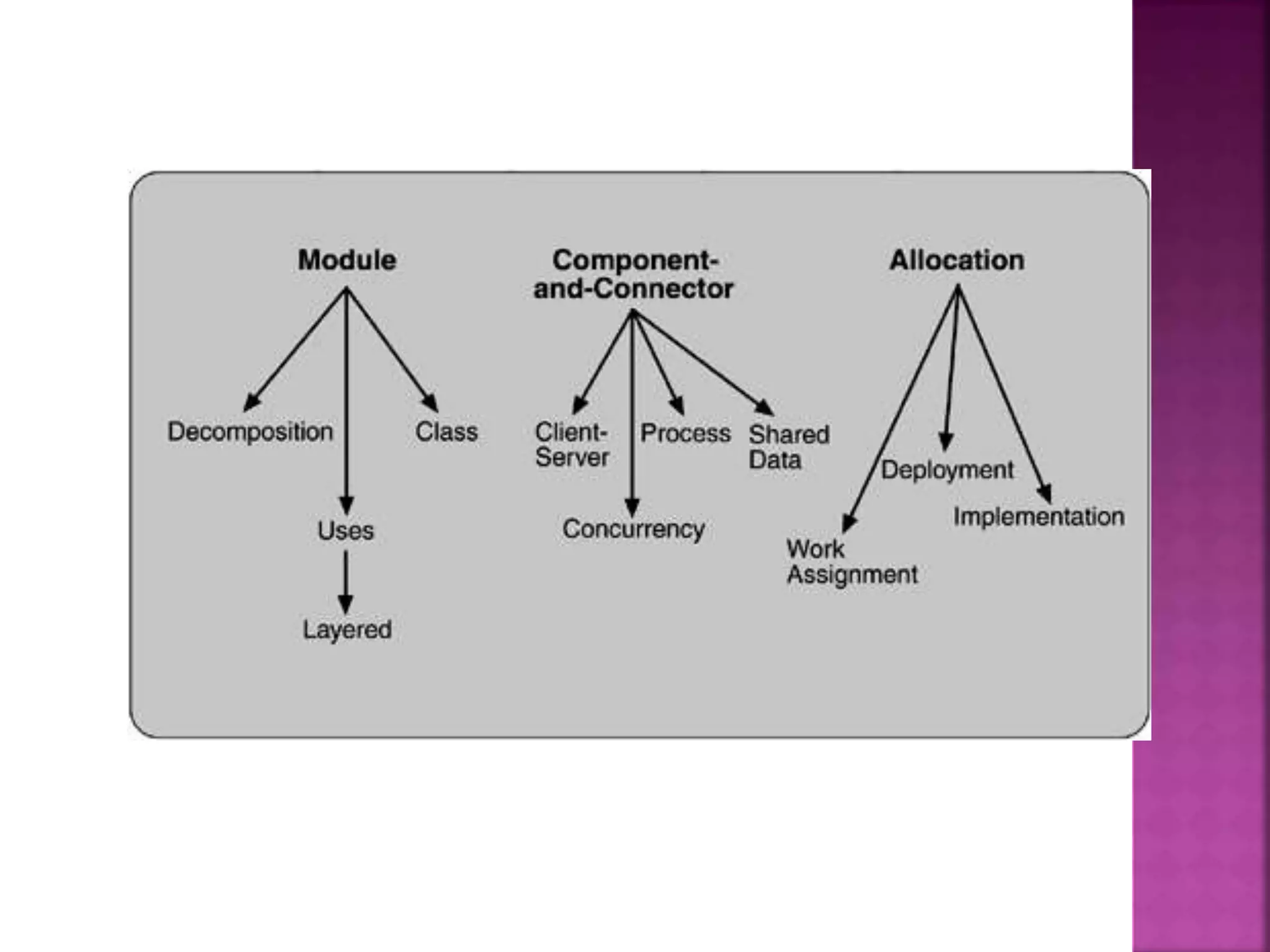 An architecture is very complicated and involves three types of decisions: how the system is structured as code units, how it is structured as runtime components and interactions, and how it relates to non-software elements. The document discusses several common architectural structures, including decomposition, uses, layered, class/generalization, process, concurrency, shared data/repository, client-server, deployment, implementation, and work assignment structures. It also discusses Kruchten's four views of logical, process, development, and physical.