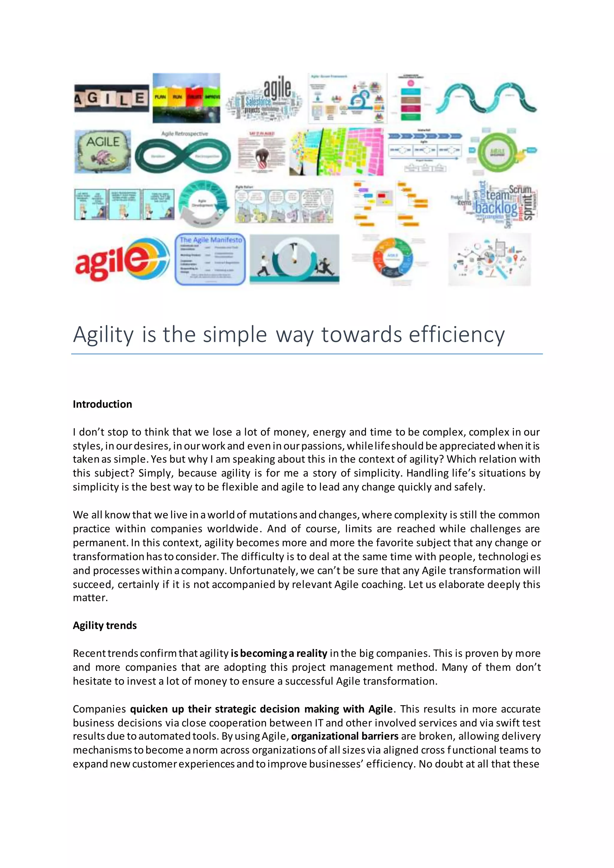 1. Agility through simplicity is becoming an important trend as companies seek to adapt to constant changes through more flexible processes. Adopting an Agile approach requires transforming company culture, processes, and mindsets.