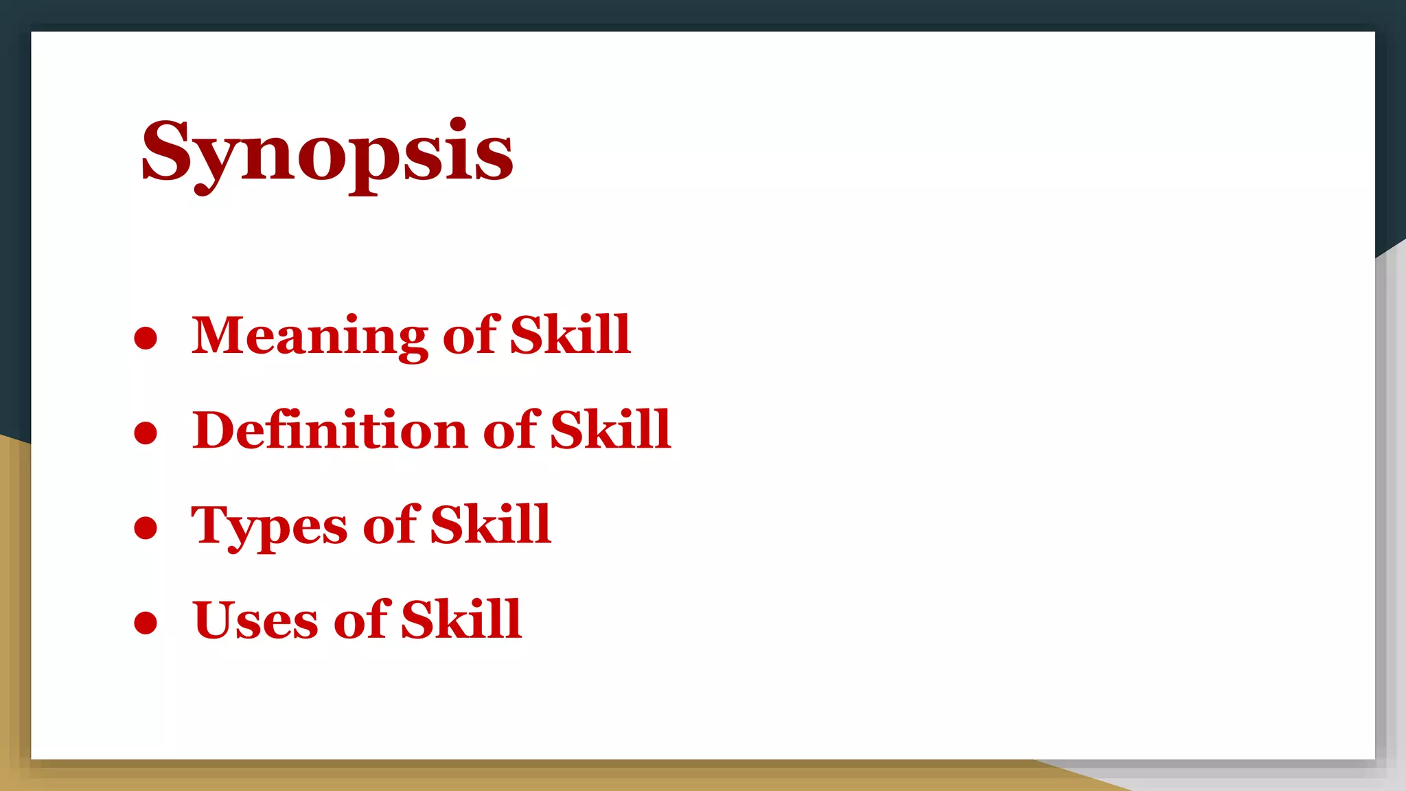 The document outlines the epistemological bases of education focusing on skills, including their definitions, types, and uses. Skills are categorized into labor, life, people, social, soft, and hard skills, each serving different functions in personal and professional contexts. It also highlights seven essential skills that students need for their future, such as critical thinking, collaboration, and effective communication.