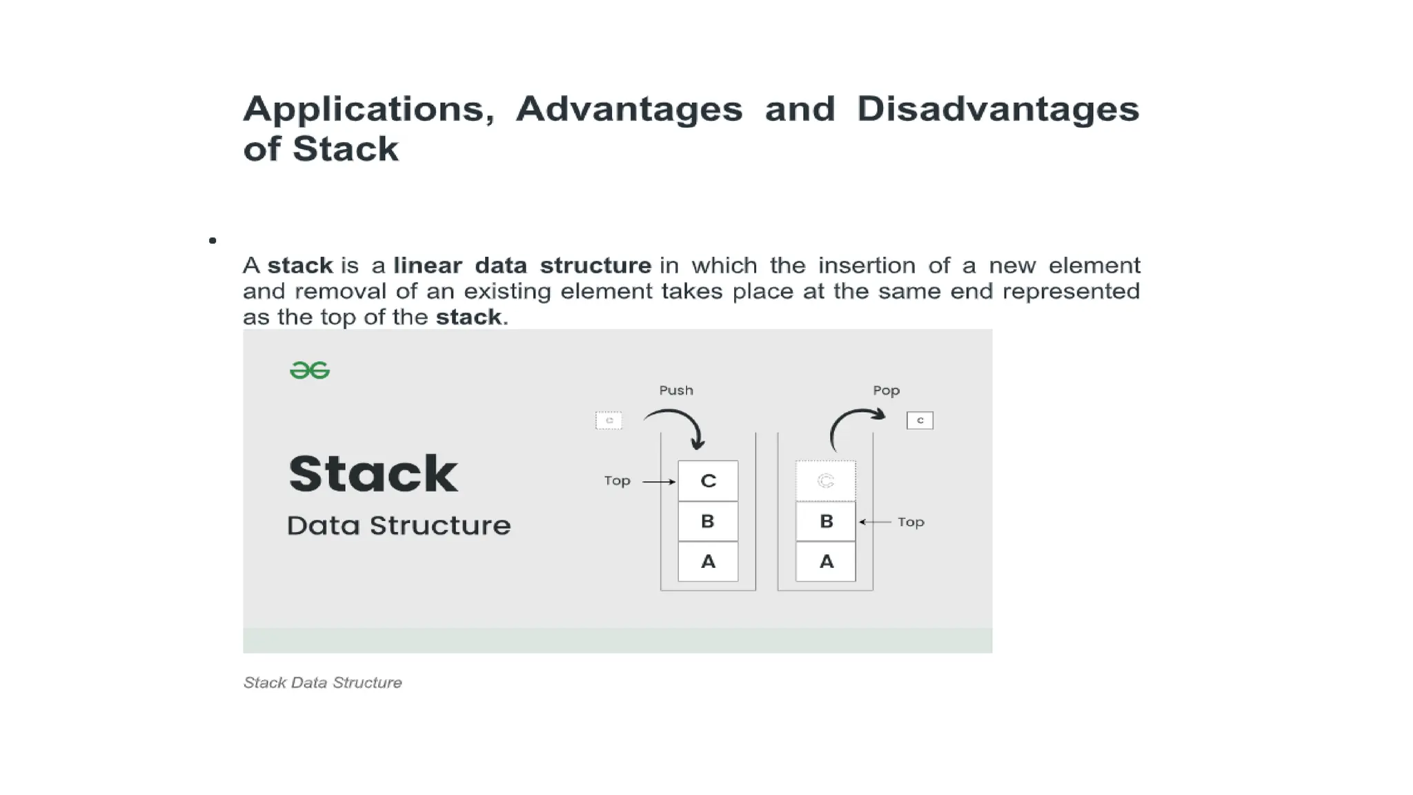 • that is inserted last will come out last. It is an ordered list in which insertion of an