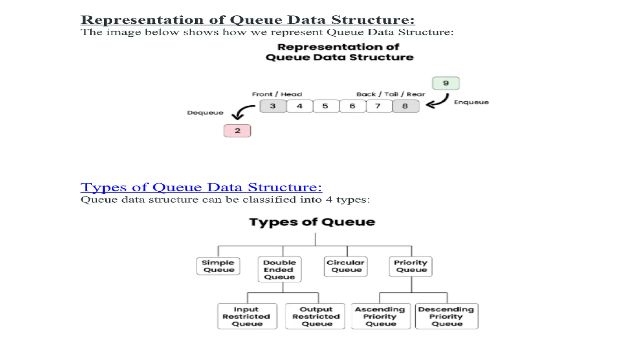 • Simple Queue: Simple queue also known as a linear queue is the most basic