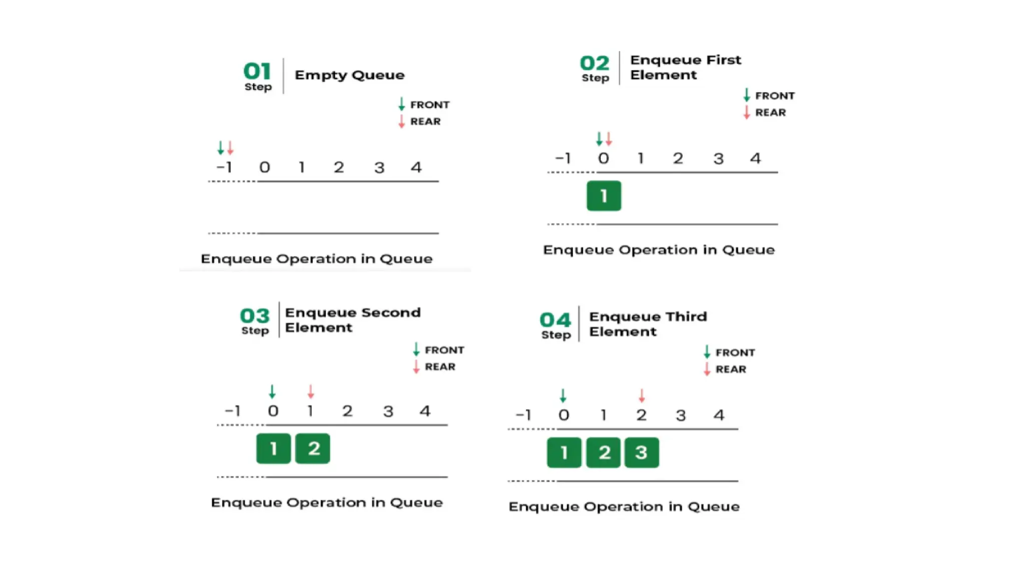 • inserted in the queue at the end i.e. at the rear end. (Where T is Generic i.e we can define Queue of any