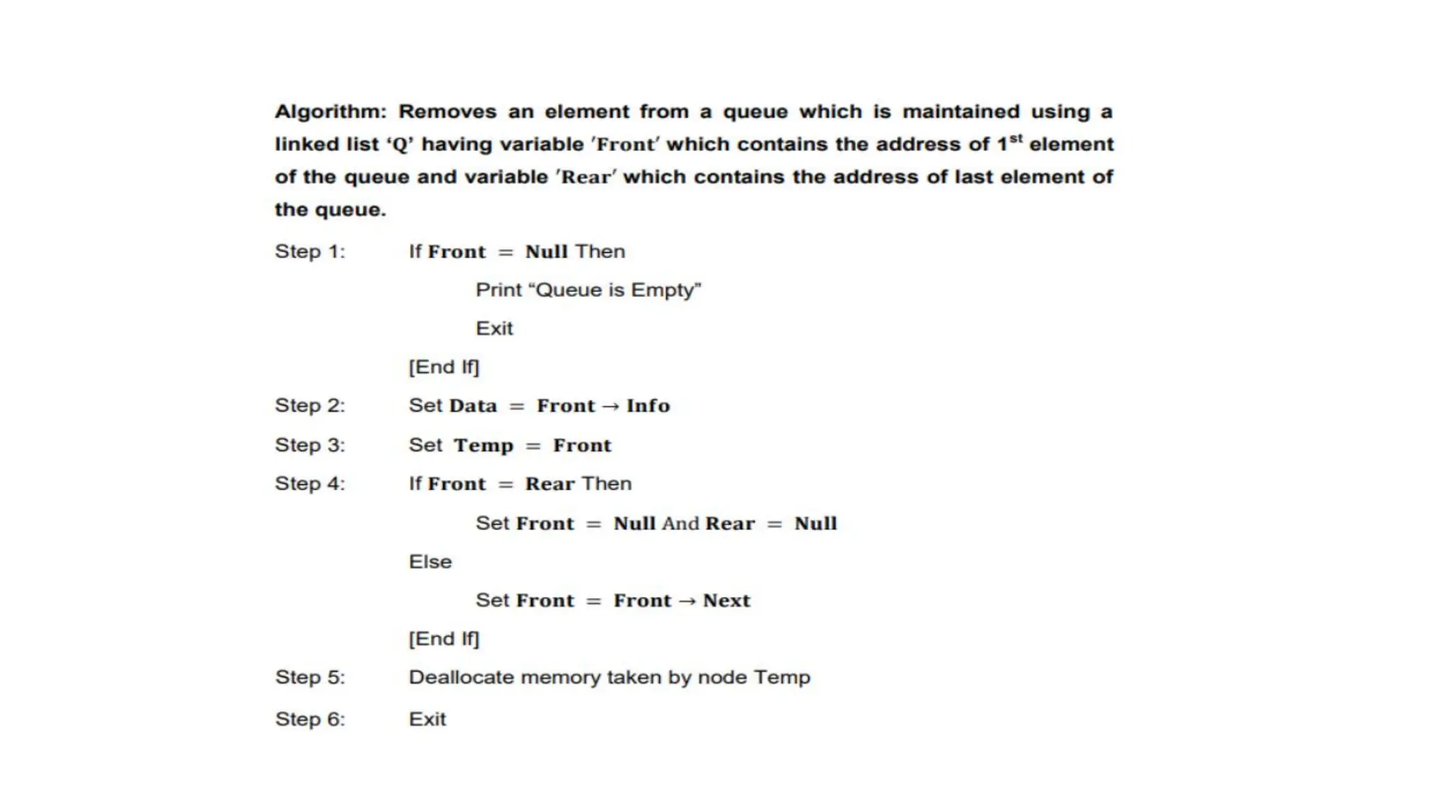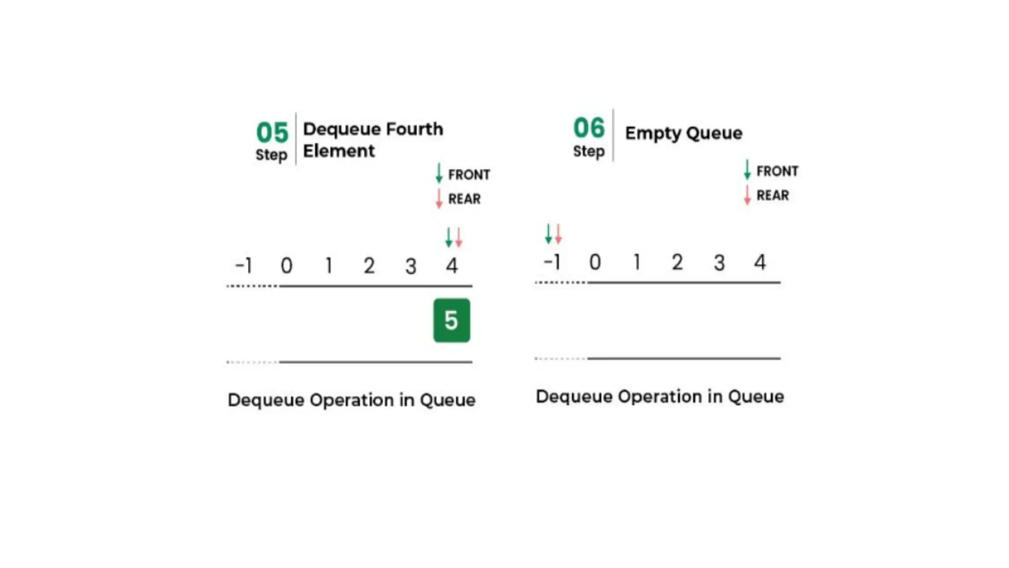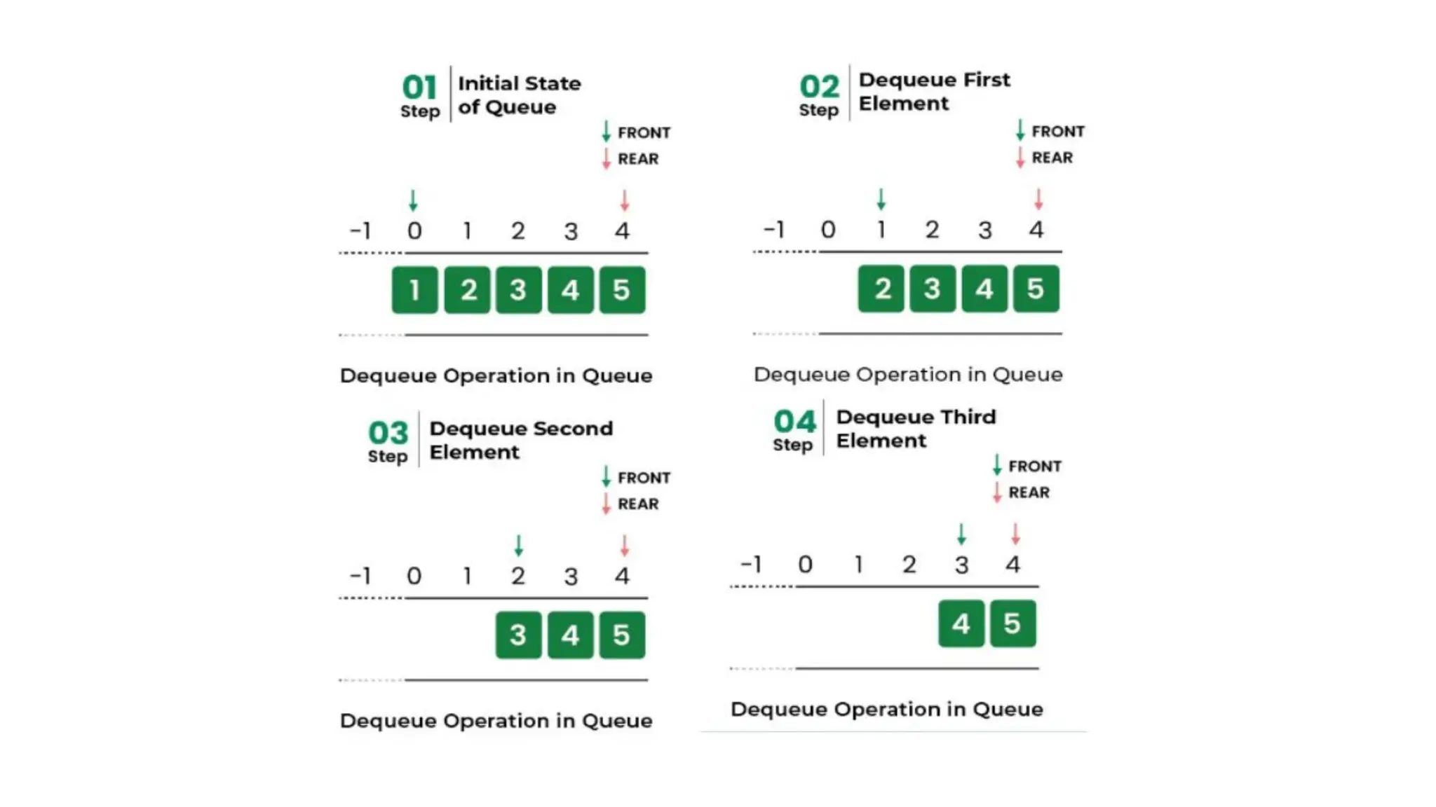 • place at the rear end and removal of an element i.e. the Dequeue operation takes place at the front end.