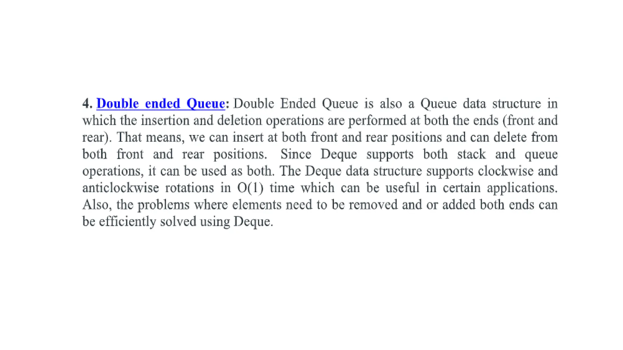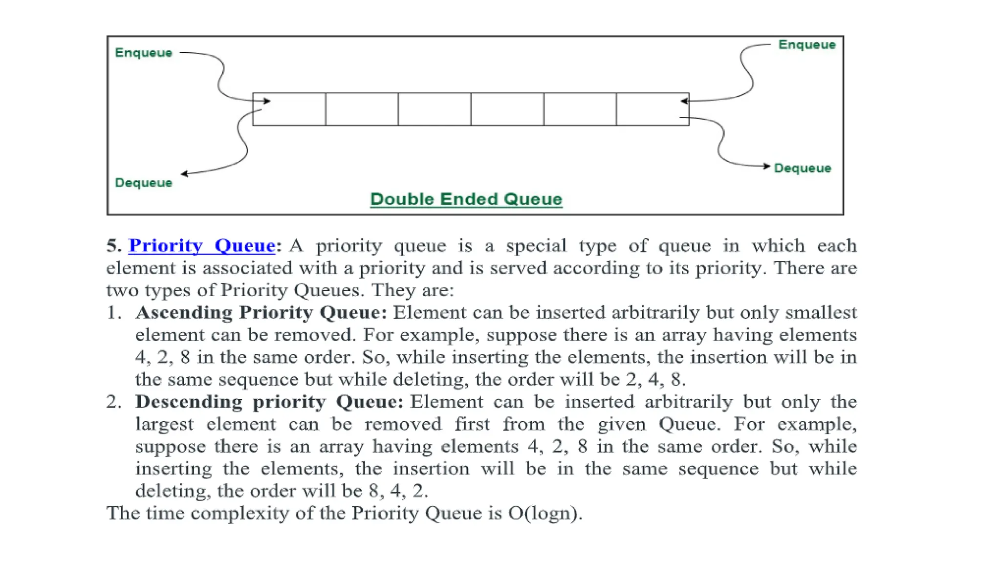 • Dequeue: Dequeue is also known as Double Ended Queue. As the name suggests