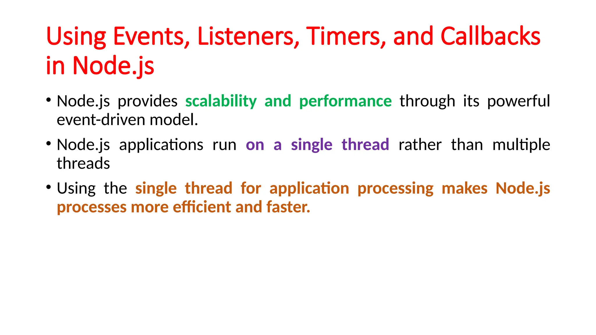 •Using Events, Listeners, Timers, and Callbacks in Node.js:Node.js