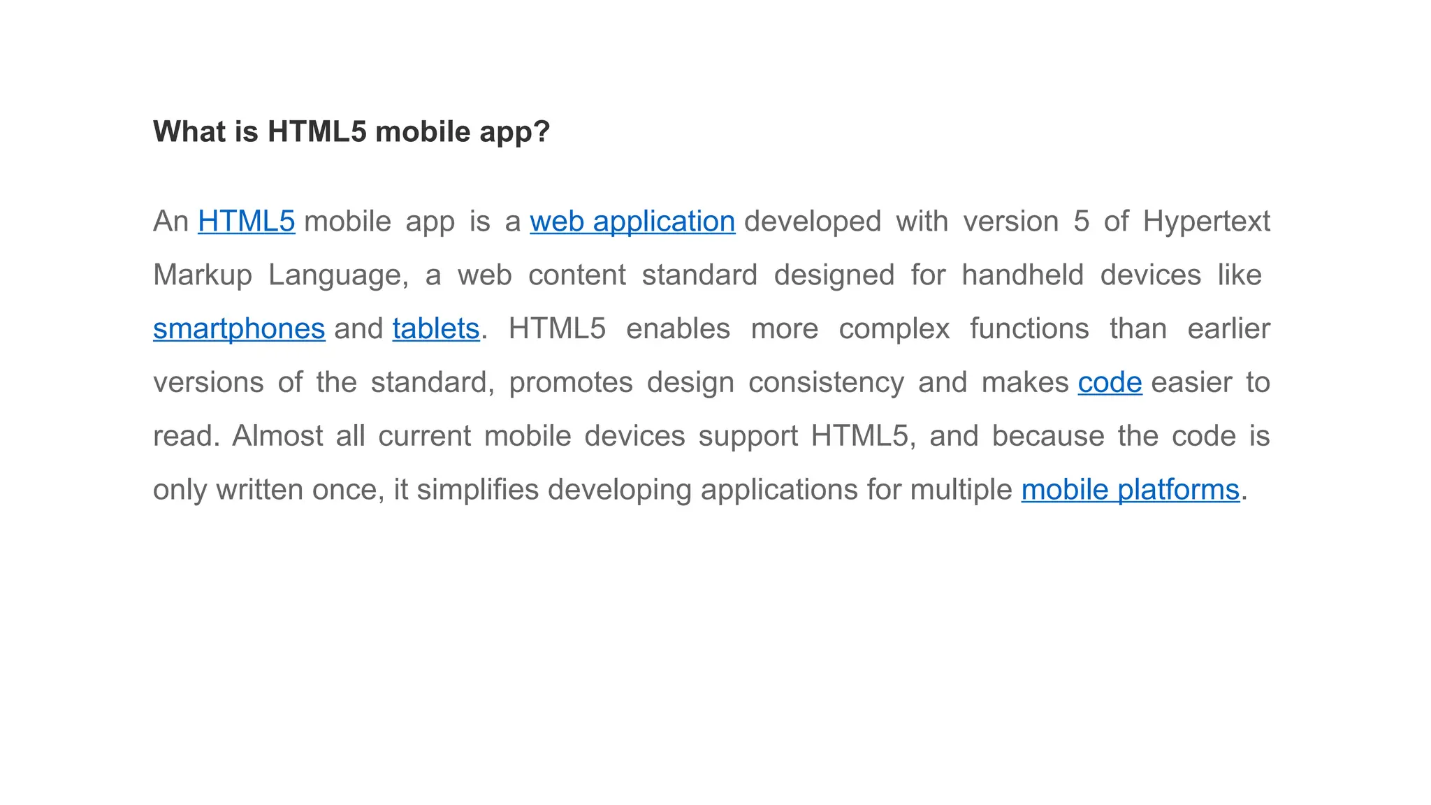 HTML5 mobile apps are web applications designed for handheld devices using the fifth version of HTML, allowing for simpler cross-platform development and seamless user experiences. While these apps offer advantages such as reduced complexity, easy content updates, and searchability, they may be less efficient than native apps and susceptible to connectivity issues. The document also compares HTML5 apps with native and hybrid apps, highlighting their respective strengths and weaknesses in performance and compatibility.
