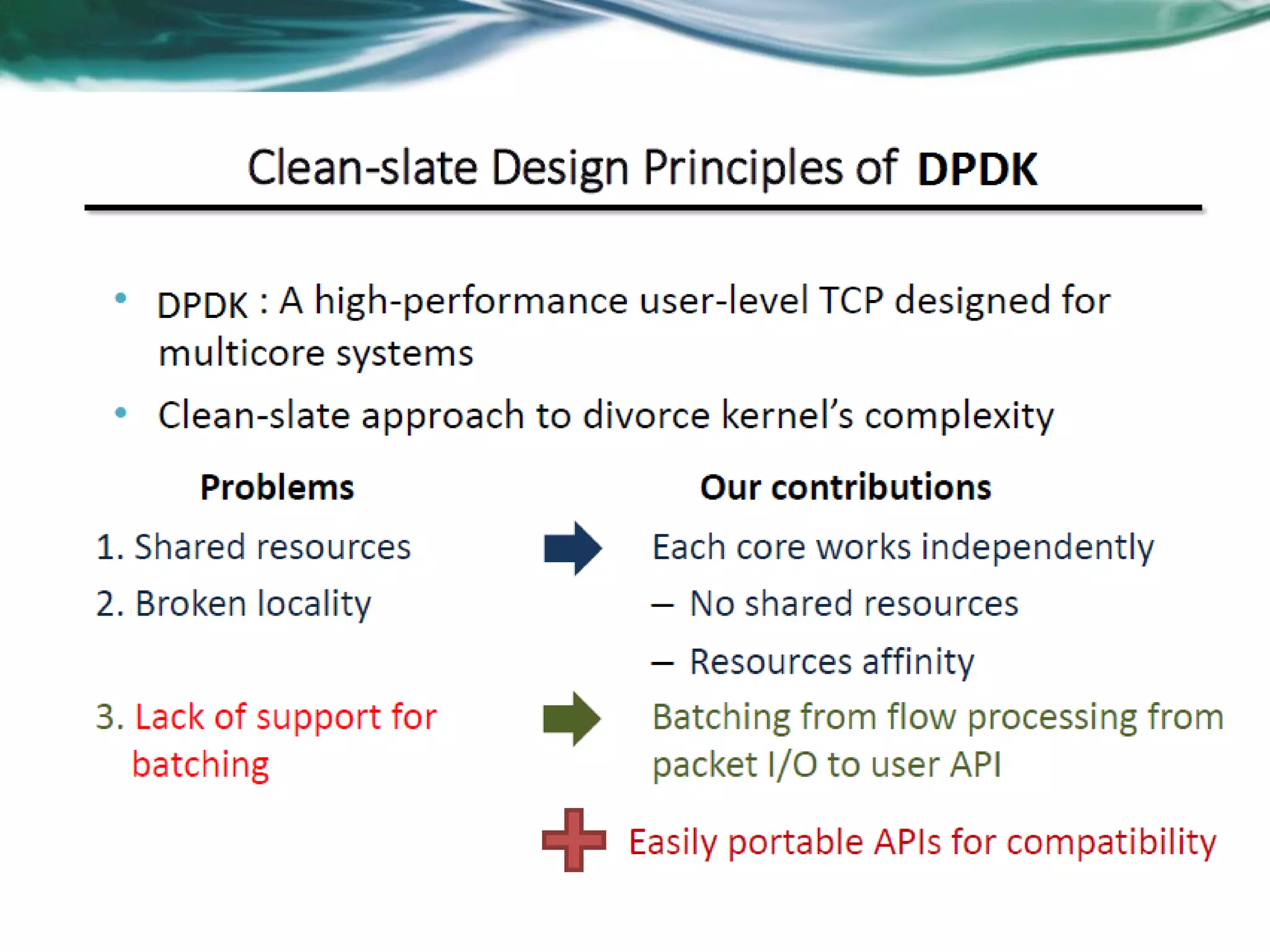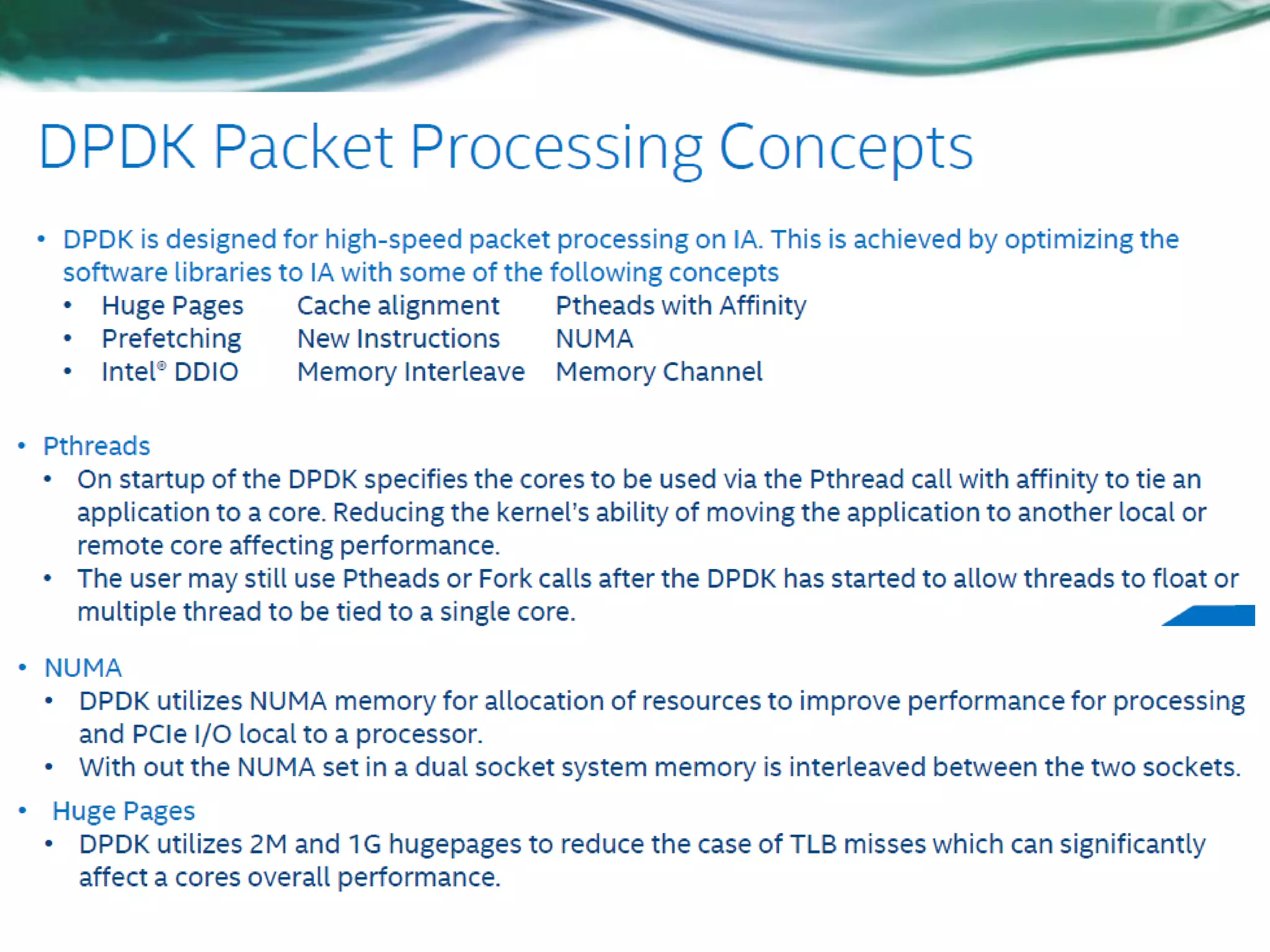 DPDK greatly improves packet processing performance and throughput by allowing applications to directly access hardware and bypass kernel involvement. It can improve performance by up to 10 times, allowing over 80 Mbps throughput on a single CPU or double that with two CPUs. This enables telecom and networking equipment manufacturers to develop products faster and with lower costs. DPDK achieves these gains through techniques like dedicated core affinity, userspace drivers, polling instead of interrupts, and lockless synchronization.