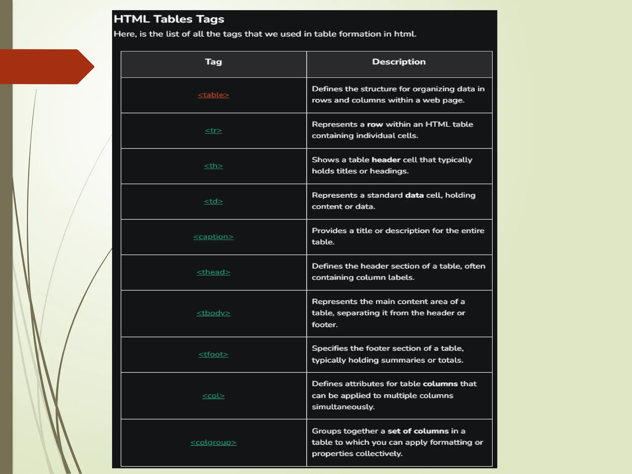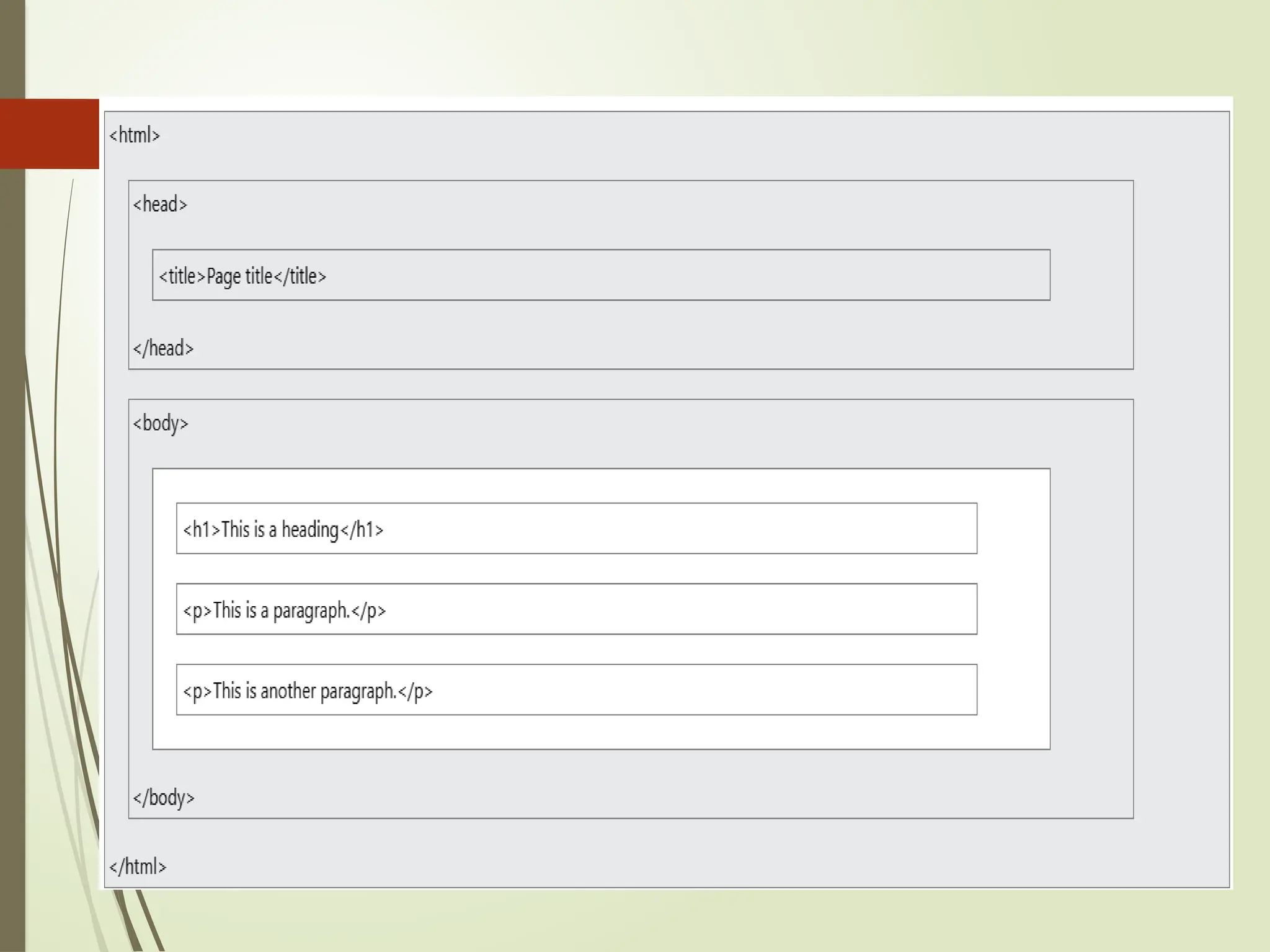pages. It uses elements, tags, and attributes to organize text,
