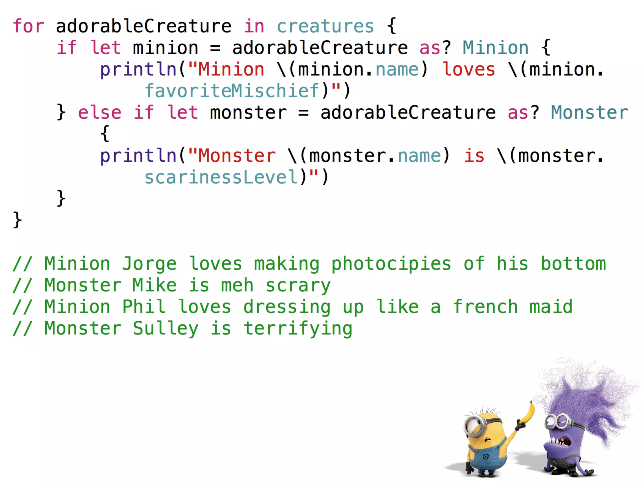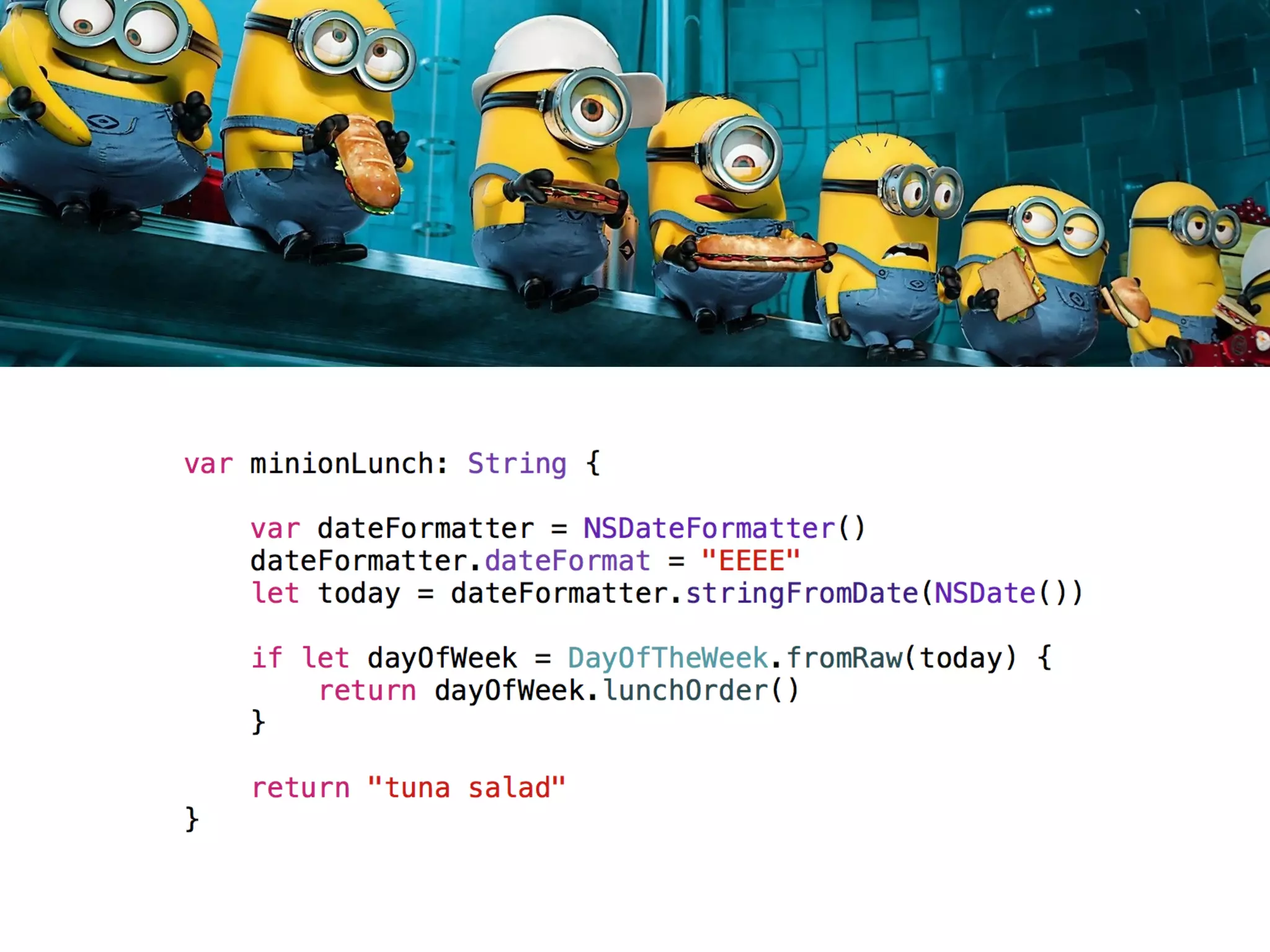 The document provides an overview of Swift basics including type inference, optionals, downcasting, functions, computed properties, and lazy properties. It then discusses using playgrounds to experiment and learn Swift. It highlights that everyone is a beginner and lists additional Apple and third party resources for learning Swift such as WWDC videos, Xcode, blogs, websites, and accounts to follow on Twitter.