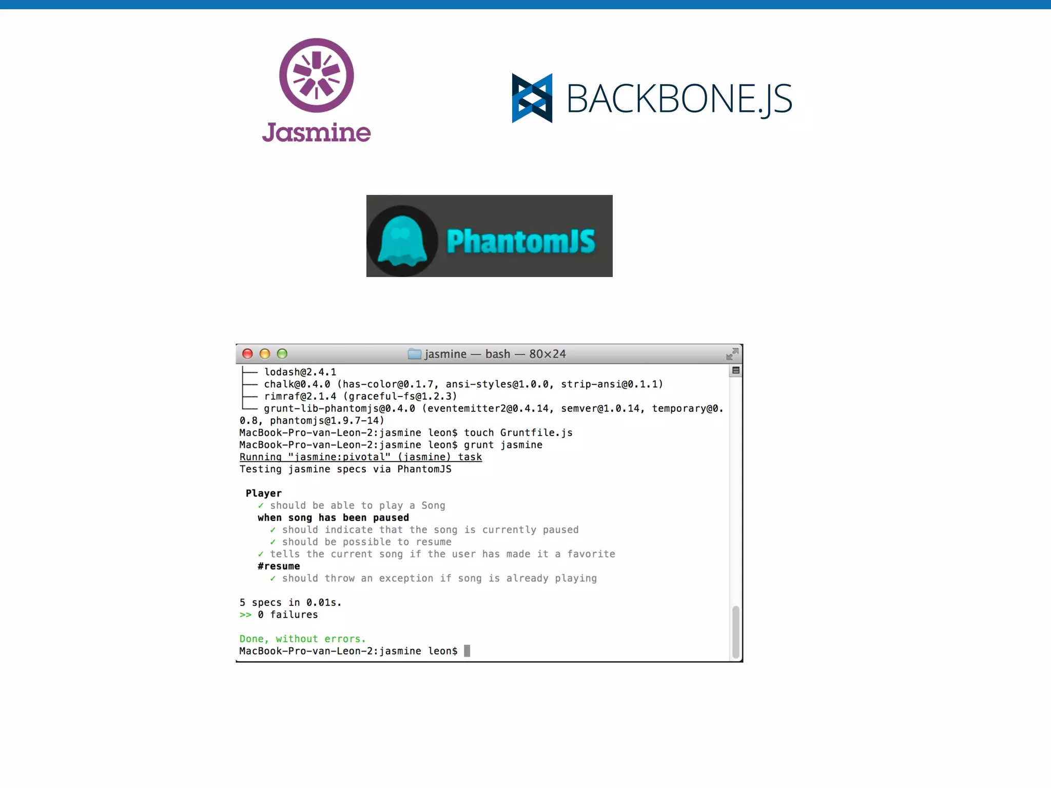 - The jasmine-jquery plugin allows testing user interactions like clicks directly.