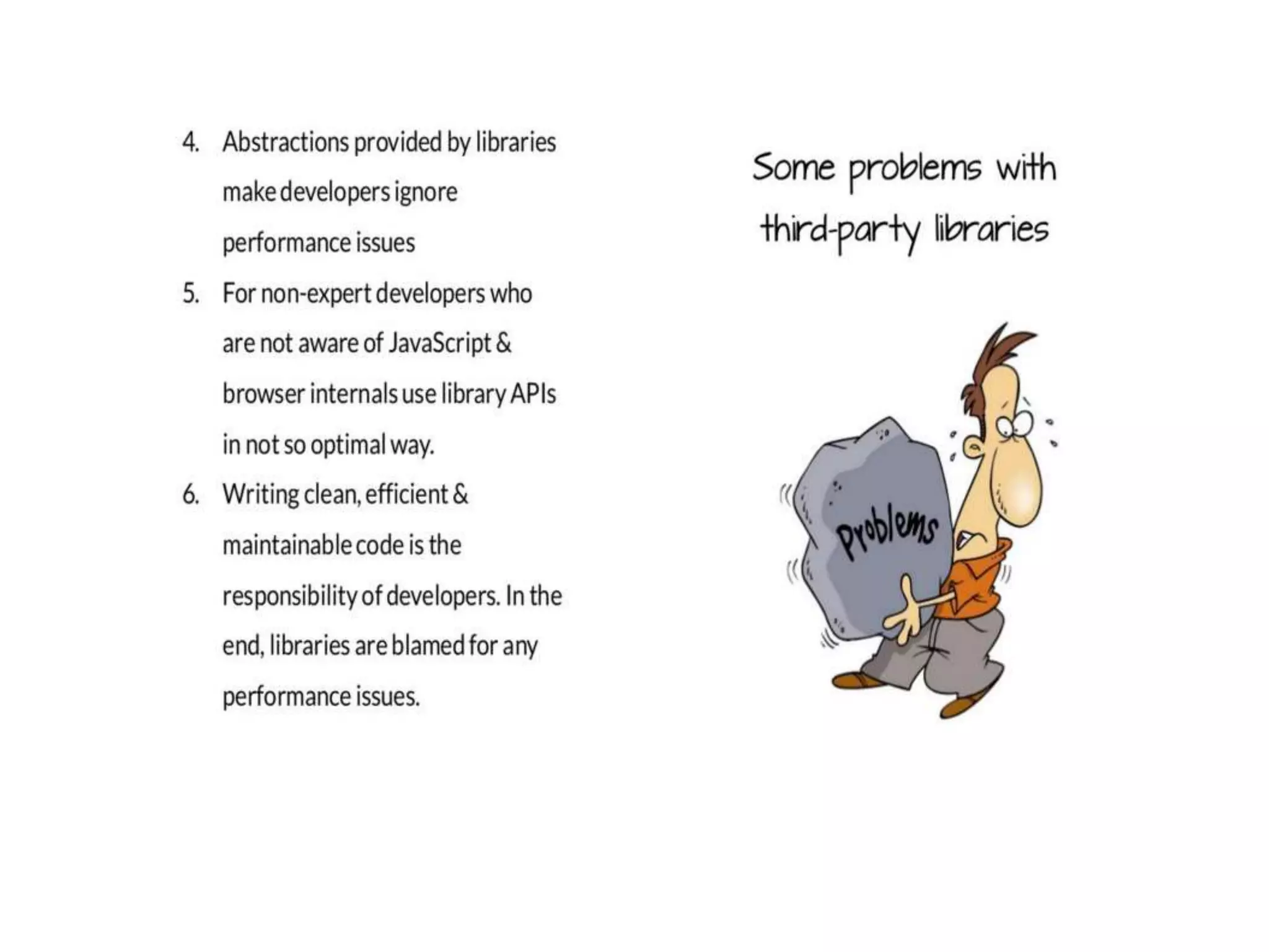 This document summarizes and compares four popular JavaScript frameworks: Backbone.js, AngularJS, Ember.js, and Knockout.js. It covers key areas like how easy it is to get started with a "Hello World" example, dependencies, data binding capabilities, routing support, how views are defined, testing support, data handling, documentation/community support, and third party integration capabilities.