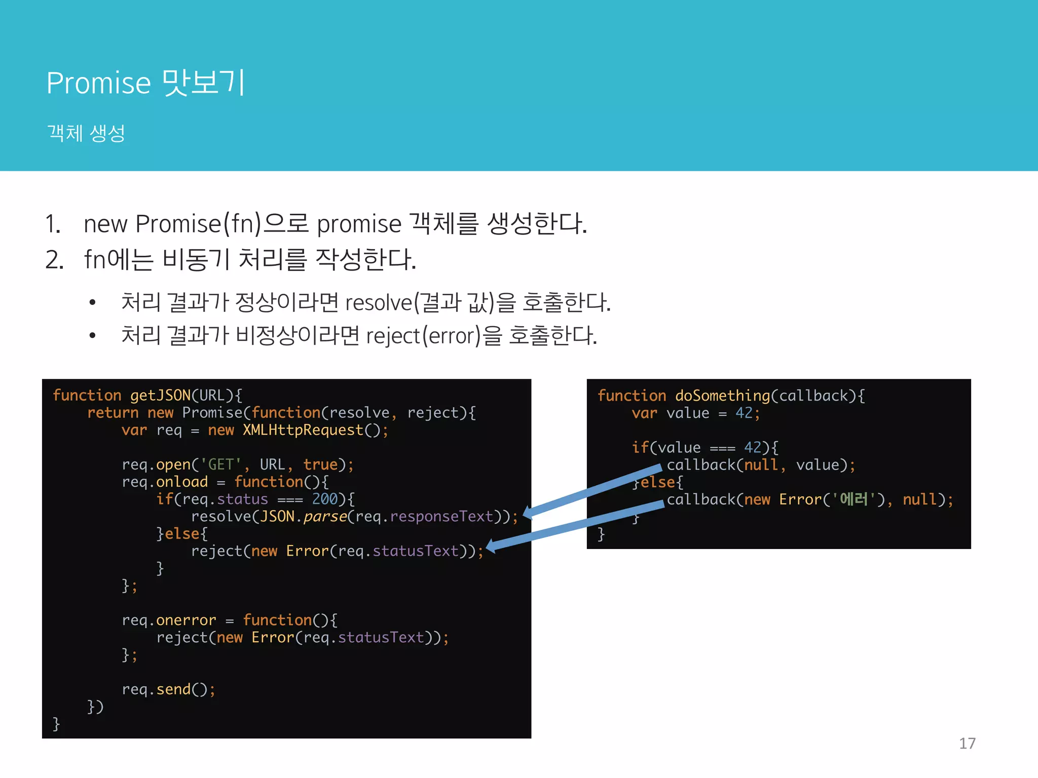 Promise는 결과 값을 추상화한 객체를 전달한다.