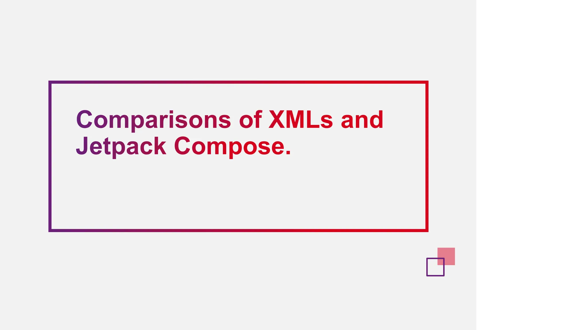 The document provides an overview of Kotlin and Jetpack Compose, highlighting the importance of etiquette in sessions such as punctuality, feedback, and maintaining silence. It outlines Kotlin's features, advantages, and its interoperability with Java, alongside a comparison between traditional XML layouts and the modern Jetpack Compose approach. The content emphasizes Jetpack Compose's benefits in UI development, including reduced boilerplate code, improved readability, and dynamic updates, while suggesting when to use XML versus Jetpack Compose.