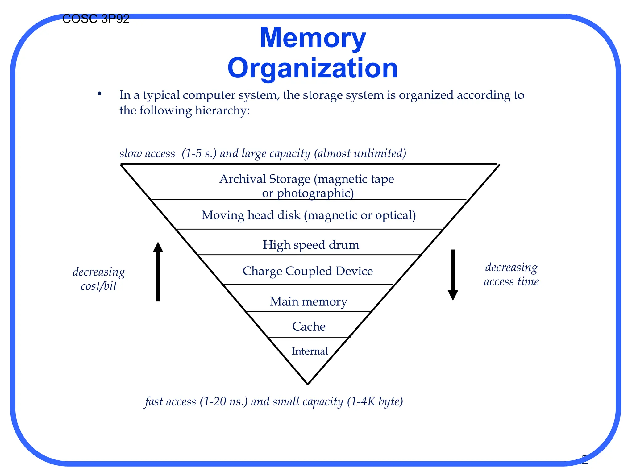 fast access (1-20 ns.) and small capacity (1-4K byte)