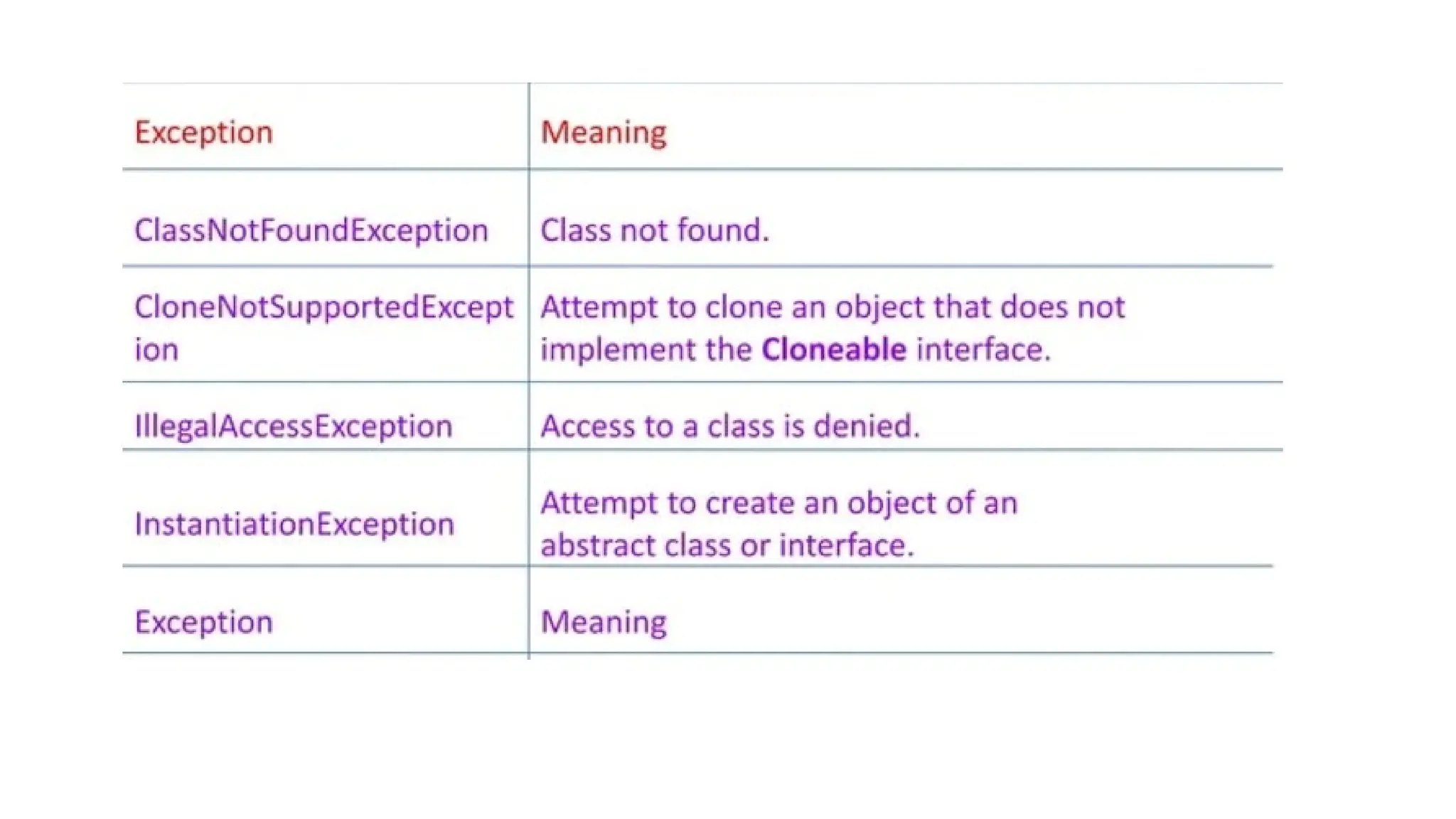 ● Checked exceptions → IOException, SQLException, ClassNotFoundException