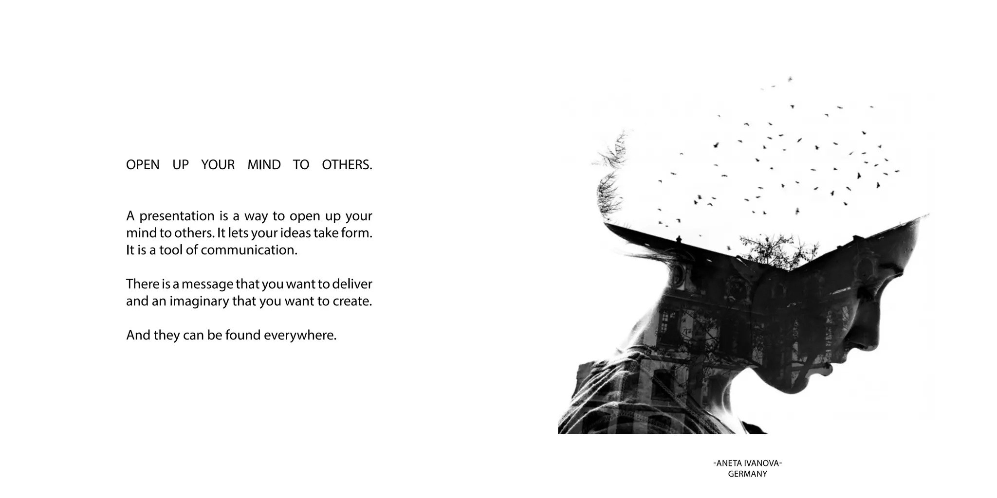 The document provides guidance on creating effective presentations. It discusses the importance of semantics, syntax, structure, flow, and narration. It also offers tips on using grids, typefaces, images, and information design principles. Various presentation programs like Photoshop, Illustrator, and InDesign are also introduced. The overall message is that an engaging presentation tells a story and meaningfully conveys a message through its content, visuals, and organization.