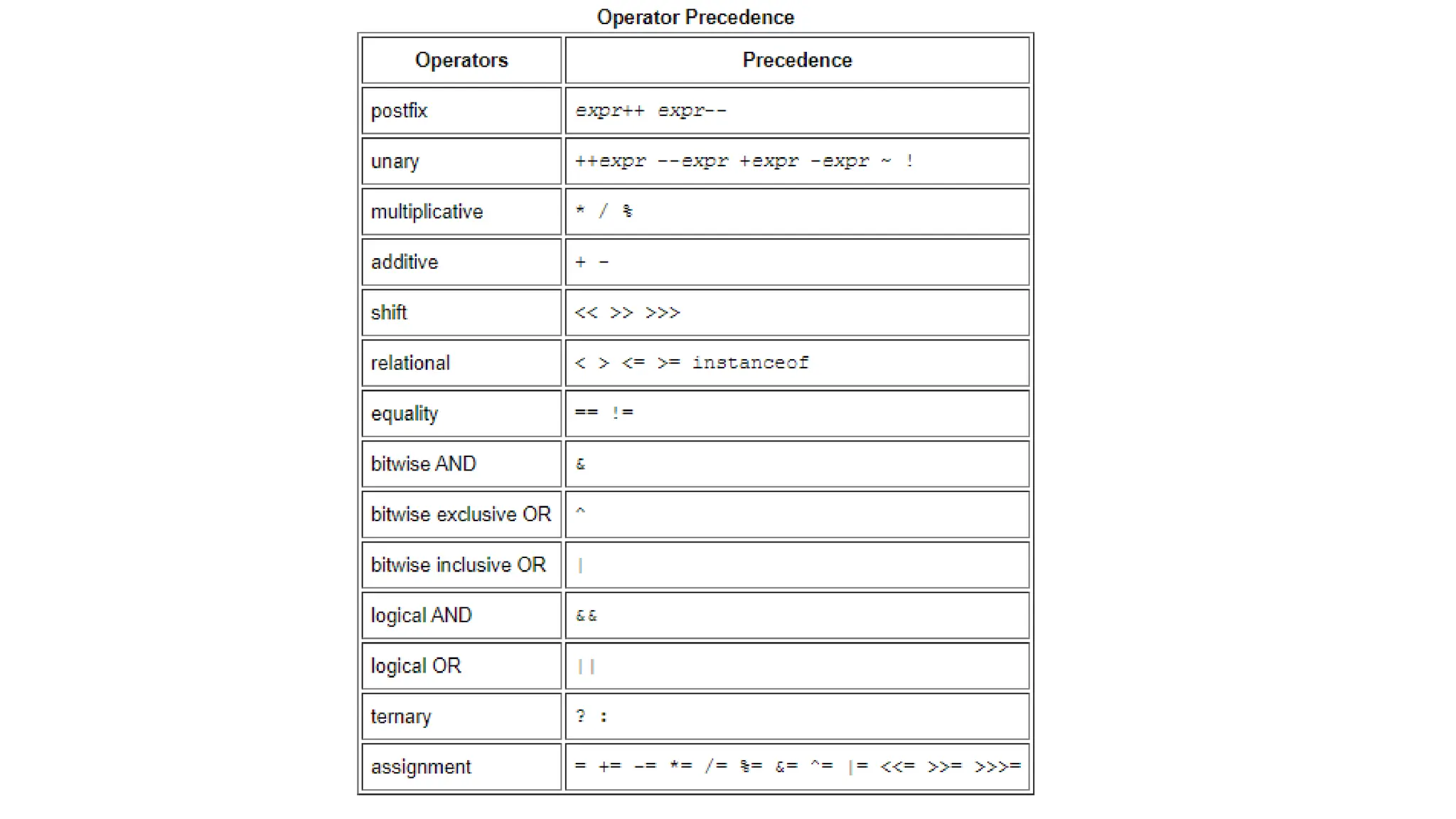 Operators in Java can be classified into 5 types: