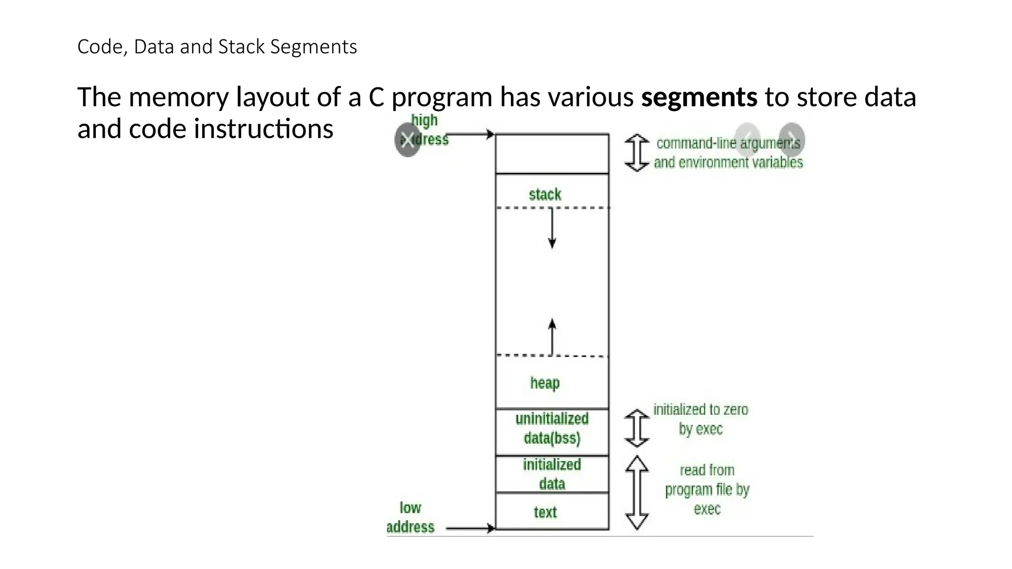 • Initialized data or simply data segment that stores all global, static, constant, and external