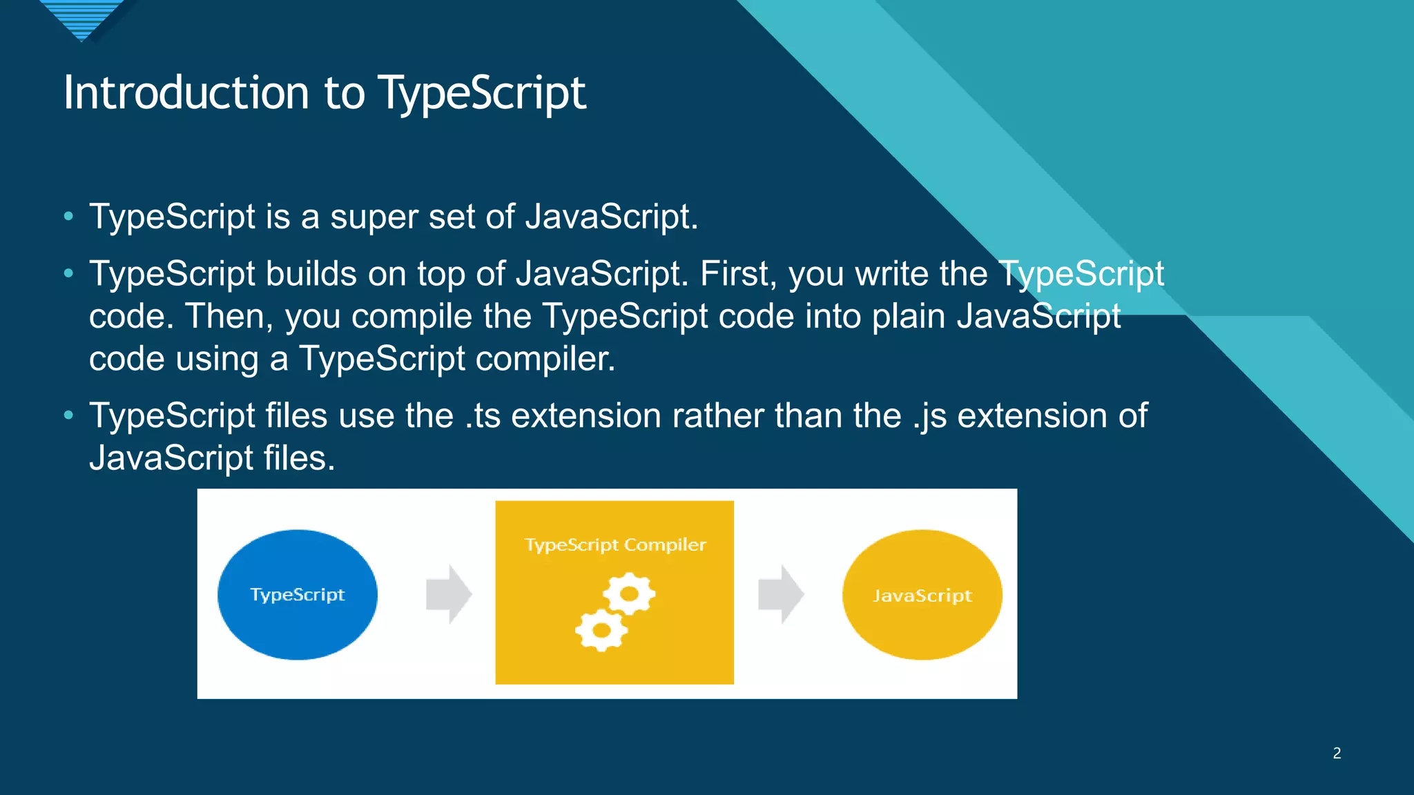 TypeScript is a superset of JavaScript that compiles to plain JavaScript code. It introduces additional syntax like interfaces, classes, and modules to JavaScript. TypeScript files use the .ts extension and are compiled to JavaScript using a TypeScript compiler. TypeScript supports basic data types like numbers, strings, booleans, arrays, enums, tuples, and objects. Functions and parameters can be defined with optional types in TypeScript.