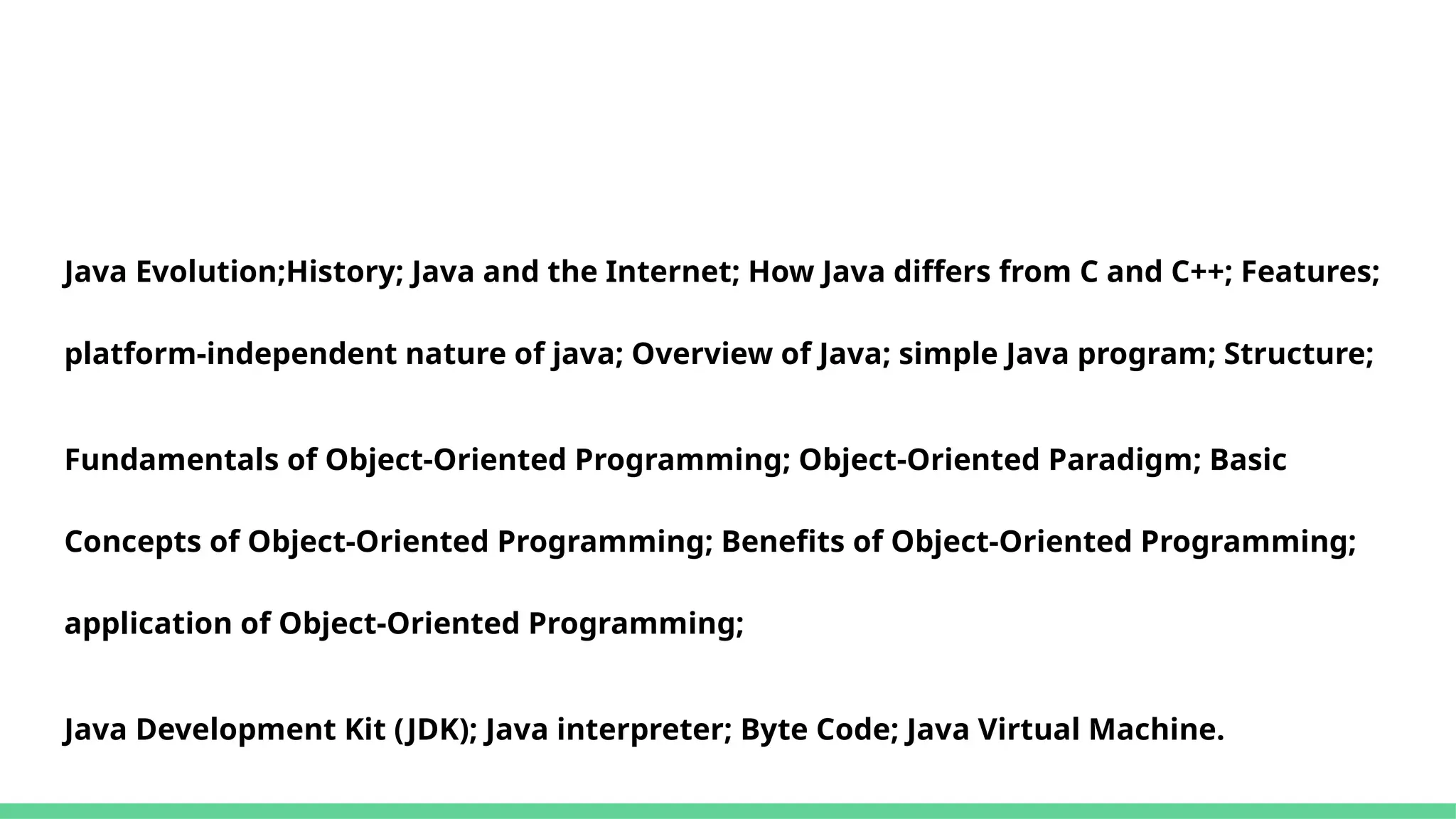 The document provides a comprehensive overview of Java, detailing its history, features, and programming paradigms, particularly its evolution as a platform-independent, object-oriented language. It discusses the Java Development Kit (JDK), the Java Runtime Environment (JRE), and the Java Virtual Machine (JVM), as well as core principles of object-oriented programming such as encapsulation, inheritance, polymorphism, and abstraction. Furthermore, it highlights Java's networking capabilities and its use in developing dynamic web applications through applets.