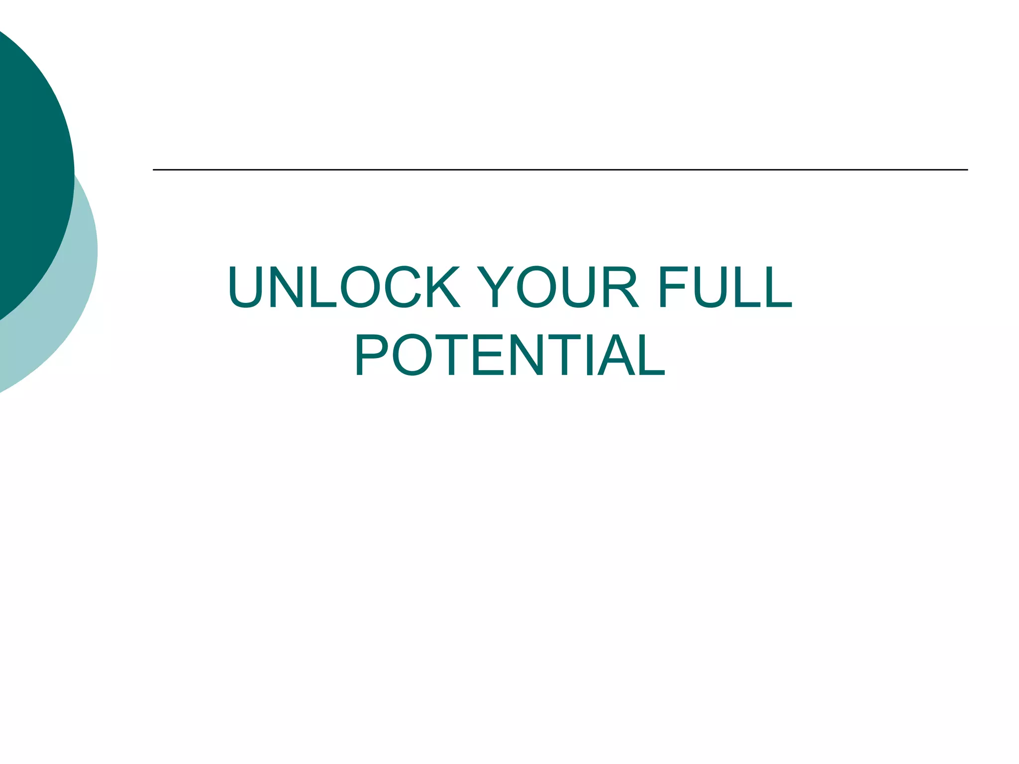 The document outlines strategies to unlock one's full potential by focusing on high-value tasks, utilizing the 80/20 rule, and adopting effective habits. It emphasizes the importance of simplifying tasks, leveraging the strengths of others, and taking responsibility for personal growth. Ultimately, it advocates for balancing work and life while maintaining focus on the most impactful activities to achieve greater success and satisfaction.