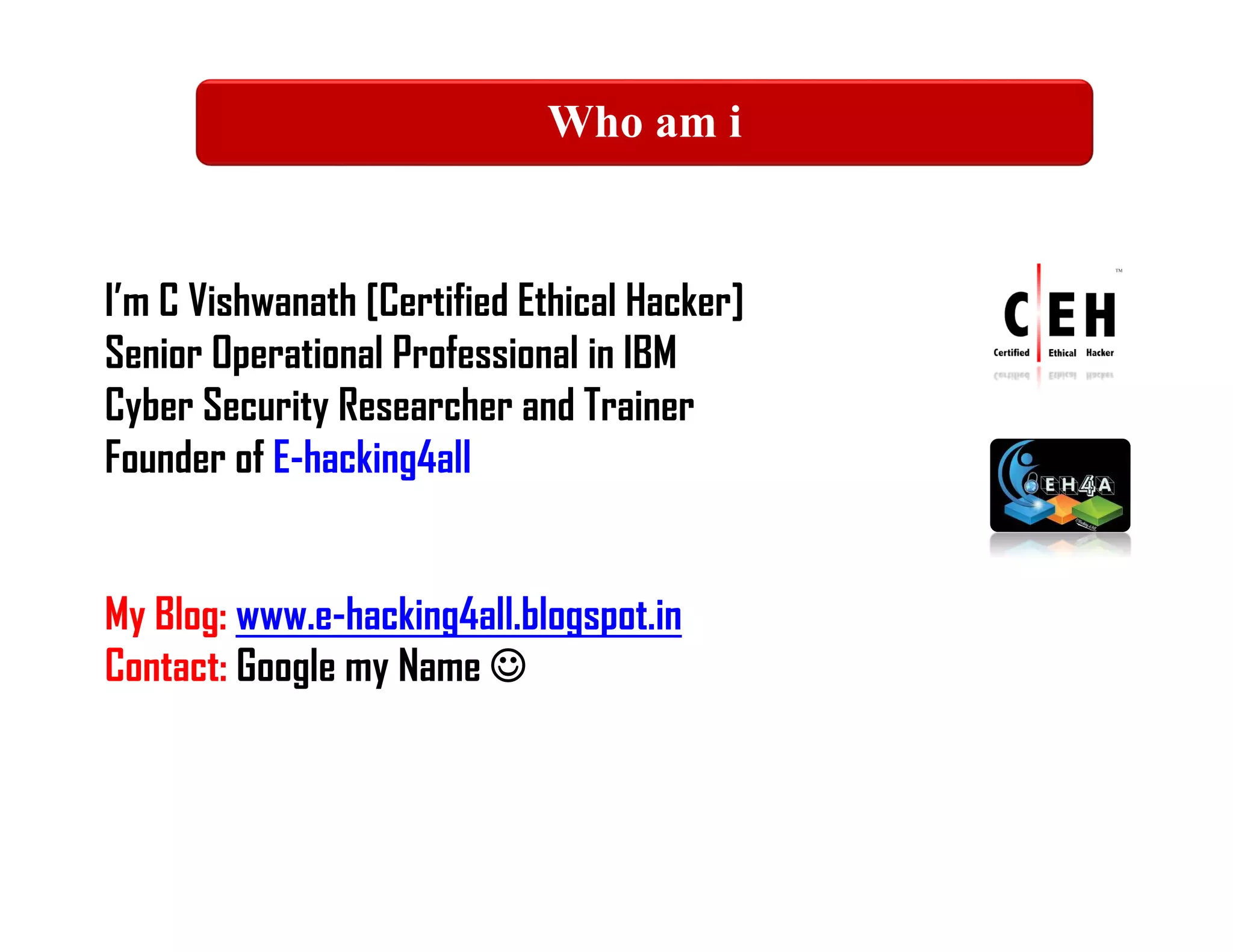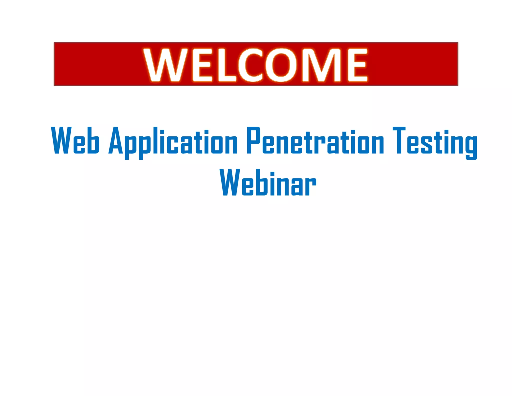 The document outlines a webinar on web application penetration testing by C. Vishwanath, covering various aspects of hacking and ethical hacking. It details the penetration testing process, security vulnerabilities such as SQL injection, Cross-Site Scripting (XSS), and authentication bypass, along with countermeasures to mitigate these risks. The presentation emphasizes the importance of identifying exploitable vulnerabilities in applications to protect sensitive data from potential attackers.