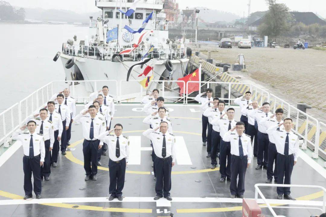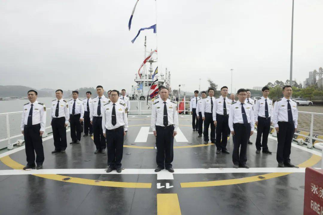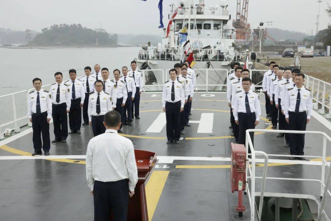 钦州海事局领导、海巡执法支队全体人员、党工部及装备处负责人、各海事处与平陆运河监管工作组代表、海巡船艇大队全体人员参加了此次仪式。