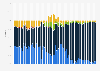 Distribution of desktop operating systems (OS) used in Belgium from 2009 to 2025