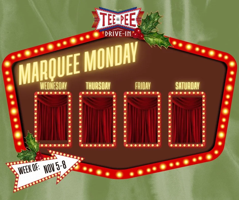 For the first time ever, the Teepee Drive-In will be open during the holiday season! Throughout November and December, weβll be showing a festive mix of holiday favorites and family-friendly films.