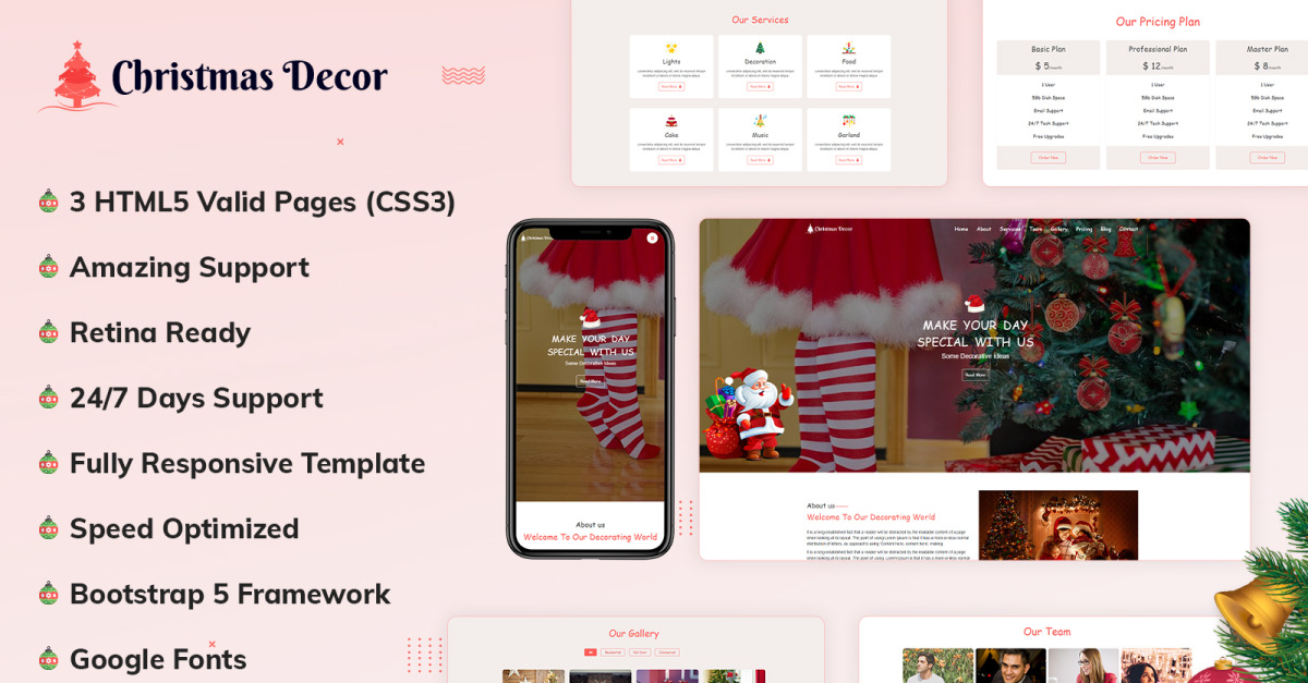 圣诞装饰 HTML 网站模板是一个完全精确的白色和红色模板,适用于您的圣诞装饰商店、圣诞配件、树装饰品、服饰店、钟声、口哨店、杂货店和任何相关的圣诞商店。