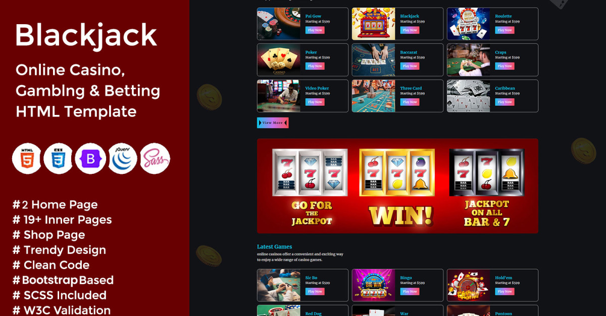 因此,如果您正在寻找既实用又美观的 HTML 模板,Blackjack就是您的最佳选择。立即开始,将您的在线赌场、赌博或投注网站提升到一个新的水平。