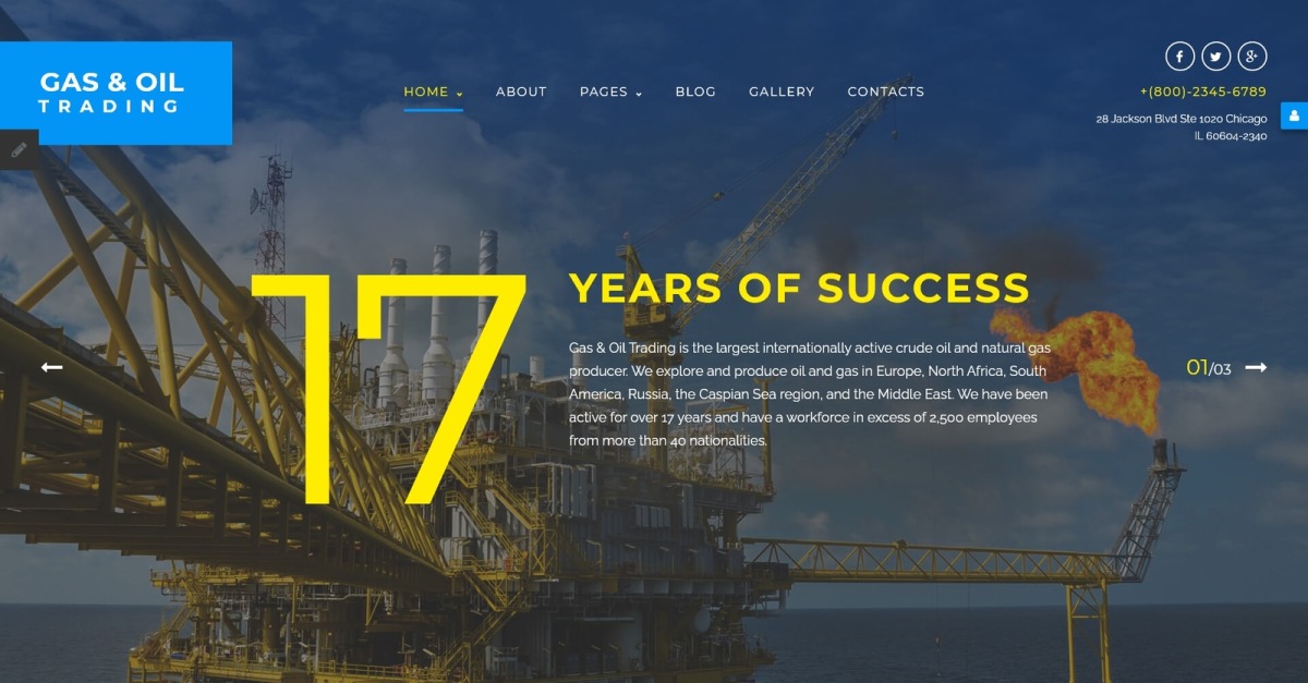 Организация занимается, конечно, не нефтедобычей, а проектированием документации для строительства домов, гаражей, нефтеналивных резервуаров и особенно часто работают с месторождениями нефти и газа (как подрядчики и сметчики). В итоге, выбрали этот шаблон, потому что даже по внешнему виду это напоминало их тематику. При установке еще дополнили заказчику сайт дополнительным меню, ему это также понравилось. Также что шаблон адаптивный - это тоже плюс.