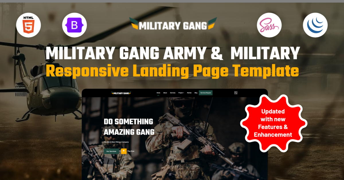 Military Gang 是专为军队和军事目的而构建的登陆页面模板,旨在向客户展示军队和军事服务。通过此登陆页面模板,您可以创建与军校、军训分支机构、军营、兵役晋升、军事网站、军事岗位相关的网站,是一个灵活且易于修改的登陆页面模板,其中所有内容最新投诉已被使用。通过此登陆页面,您可以使用与您的兵役相关的任何网站或获取促销信息。这是一个登陆页面模板,集成了易于自定义的交互式滑块和有吸引力的过渡效果。