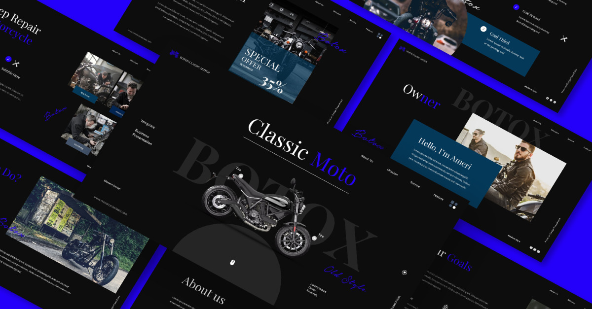Botox 经典摩托车和定制服务 PowerPoint 模板